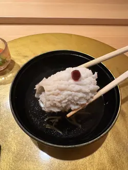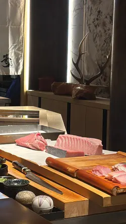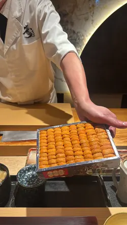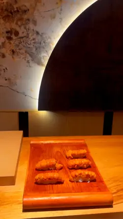呢间绝对系气氛超好 的高级Omakase 🍣师傅会为每位客人逐一介绍菜式!!!而且专业讲解得非常好!😎每样选用食材都会介绍来源地及口感味道等!客人在过程当中会了解到当造的时令海产非常喜欢拖罗跟成粒紫海胆!🫶🏻🫶🏻🥰 超好味!!有预算嘅朋友可以食吓!🤩前菜:·宫崎县沼蟹 (有啲蟹膏鲜甜好味香脆)+昆布卷 · 腐皮卷·长野县露笋 + 盐腌鱿鱼 (超级有鲜味!)·鳗鱼牛蒡卷主菜:·鳢鱼清汤 带点青柠香气、上面梅酱 (呈啫喱状)一粒粒啫喱状透明绿色是莼菜本身是植物离开水面之后就会变成啫喱状!🙆🏻♀️口感非常特别!好像吃蒟蒻般🤣🤣🤣鳢鱼配梅酱同样很开胃!·山口县鲈鱼 (配酸汁、葱、萝卜蓉)超开胃、配紫苏叶食就好清香!·富山县白海老刺身 (每一条都系细细只虾仔)(第一啖建议不沾酱油跟山葵食!感受鲜味!)·炸白海老 (带咸香!)·关鲭 ·水八爪鱼 配酱油渍山葵·岩手县紫海胆 (口感清甜!) (体验感满满!)·白烧鳗鱼 (我最爱!)·白粟米天妇罗 (爽脆非常)·四国爱媛县鲇鱼·金目鲷 (师傅用滚水渌过鱼皮)·兵库县甘海老 (鲜甜!)·北海道北寄贝 (超级爽口!) (颜色比较不同没有雪藏过!😍😍)·北海道秋刀鱼 肉质柔软(加入了埼玉县浅葱在里面!葱香四溢!)·和歌山吞拿鱼腩 (中拖罗)·和歌山大拖罗 (师傅有用盐降低油香!)·和歌山赤身吞拿鱼酱油渍 (头3甲受欢迎寿司🍣❤️❤️)·北海道马粪海胆手卷 (带点淡淡海水味)· 季节性鱼汤·自家制红豆糕 (表面有啲金箔!唔会好甜、入口即化!)·北海道富良野哈密瓜 (多汁清甜)…查看更多