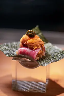 尖沙咀棉登径嘅「寿喜烧 伊势熊」,由日本福冈县出身嘅主厨久家弘一坐镇。久家主厨曾于日本多间五星级酒店任职,以自家研制寿喜烧酱汁呈现属于伊势熊风味的「现煮」寿喜烧。坐吧枱位仲可以睇到厨师即场料理,气氛好轻松。.主打SUKIYAKI Set GAKU定价$680,六道菜式由前菜、蒸物、两款和牛寿喜烧、日本野菜、昆布鸡蛋饭到甜品一应俱全。前菜用上海胆、三文鱼子、水云打开味蕾;蒸物热呼呼上枱,味道细腻。寿喜烧部份可以试到两款和牛——京都姬牛同鹿儿岛野崎牛。京都姬牛肉质软稔细致、肉味浓郁;野崎牛油花分布匀称,入口即化但又唔觉腻。每块肉都可以先食原味,再试配松露酱、柚子或冲绳辣椒丝,味道层次丰富。.必试嘅仲有店家最近主打嘅海胆鱼子酱和牛寿司。高级食材堆叠得恰到好处,一口食到和牛嘅香、海胆嘅滑同鱼子酱嘅咸香,非常过瘾。野菜方面,用上多款日本直送野菜,包括静冈Amela蕃茄、京都烧豆腐同山形冬菇,每样都吸满寿喜烧汁。最后嘅昆布鸡蛋饭由北海道梦美人米及糯米混合煮成,饭粒挂满甘甜酱汁,和牛肉配上兵库县鸡蛋打成嘅云朵蛋泡,滑得嚟仲有层香气。甜品是静冈蜜瓜大福,清甜收尾好舒服。价钱以呢个质素嚟讲算抵食。特别钟意佢席前现煮嘅形式,睇住油脂慢慢融化嘅过程真系有仪式感。.晚餐套餐SUKIYAKI Set GAKU 💲680✿ 前菜二品✿ 蒸物✿ 和牛寿喜烧(二片)✿ 日本野菜✿ 昆布饭・鸡蛋盖饭✿ 甜品及✿ 海胆鱼子酱 和牛寿司 $250…查看更多