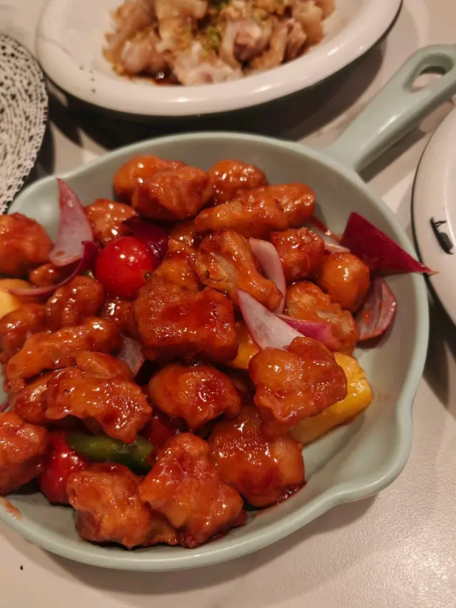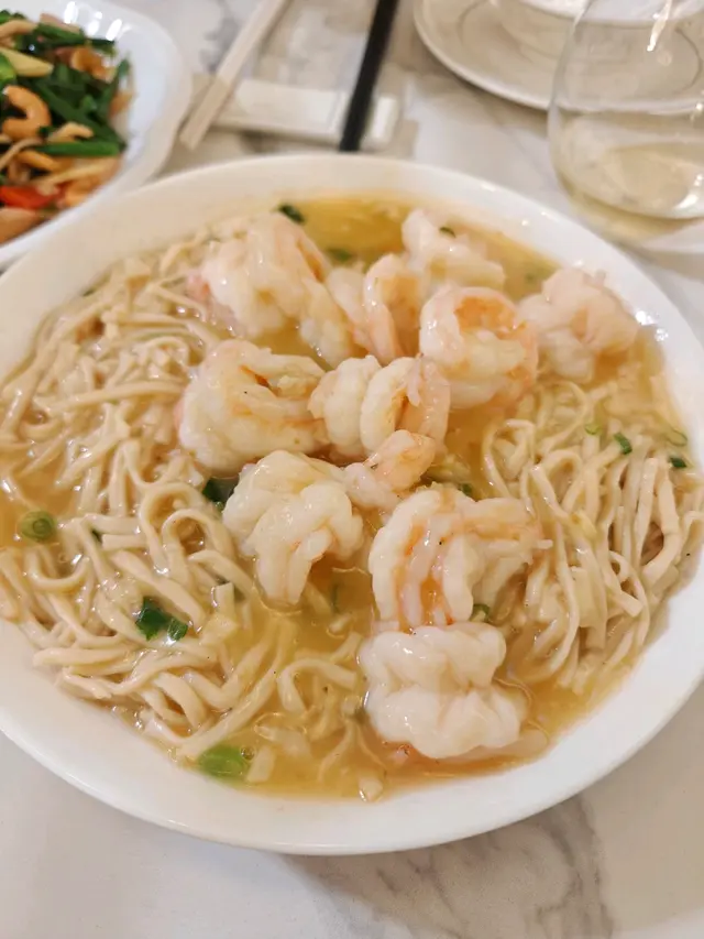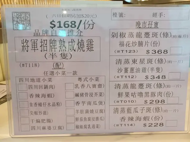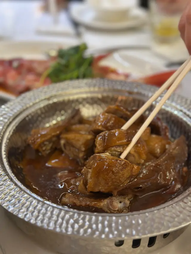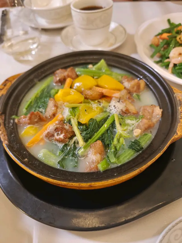 公公的生日飯,為方便老人家,選去他家附近的酒樓。平時去海港多,今次去該集團旗下的將軍會館,店內裝潢格局較為新穎一點,設有梳化卡位。這次晚飯沒點套餐,散點一些想試的菜式。點了一份孖寶套餐,牛蒡猴頭菇湯拼豉椒炒莆田蟶子。湯的用料足,舀上來的湯料見到用上很多的猴頭菇,味道清甜濃郁。以價錢而言,蟶子份量尚可,蟶子肉飽滿無沙,吸盡豉汁味道,幾惹味。鮮果咕嚕黑豚肉,蜜桃與新鮮菠蘿代替罐頭菠蘿,咕嚕肉則以黑豚肉去烹調,粒粒都啖啖肉,醬汁味道偏甜。黑豚肉脂肪較多,雖然肉味香一點,但吃得多會有點膩。會館晚市優惠,有四款$38的菜式,可選其中一款。將軍熟成脆皮燒雞,燒雞皮脆肉嫩有汁,不會過鹹,配上脆脆蝦片,這道菜抵食又好味!日式濃湯雜菜煲,幾種蔬菜配上粉絲、魚腐、魷魚、蝦仁、冬菇、鳴門卷等等,配料豐富,加入了魷魚及蝦仁,令湯底有蔬菜的甜外,還多了陣海味香。羊肚菌燒自家製黑豆腐,忘了拍照的一道菜式,但要推介試試黑豆腐,豆味香濃,豆腐又夠滑溜,健康又不失美味。清蒸阿拉斯加長腳蟹配粉絲煲,就是以芽菜、粉絲及蔥花配襯,幸好長腳蟹的質素還不錯,蟹肉鮮甜不會霉,芽菜及粉絲吸到蟹汁鮮味。豉汁白鱔煲仔飯,白鱔有4大件,夠肥美,惟煲仔飯的飯粒不夠乾身,整體還好,但不夠香及惹味。有些菜式的味道不錯,大家最滿意的要數是脆皮雞!…查看更多