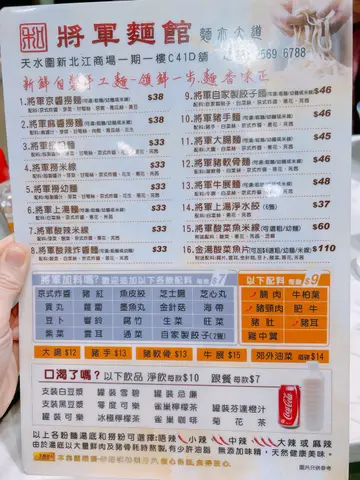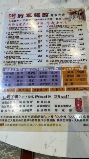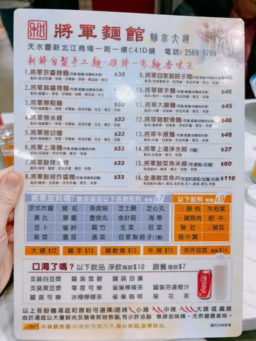 將軍麵館 (天水围) 网址: https://s.openrice.com/QrLS0zeA400 地址: 香港天水圍天湖路1號新北江商場1期1樓C41D號舖 电话: +852 25696788