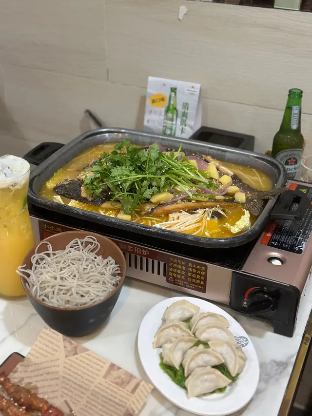 朋友好種意食雞煲🥘和燒烤🍢, 我就帶佢黎左呢間位於大圍的親民小店晚飯, 佢主要食雞煲、烤魚、燒烤, 有室內和室外坐位, 好岩朋友吹吹水或一班人聚會🥳*秘制雞煲🐔🔥(半隻)有原味或者麻辣, 我地叫左麻辣小辣, 店家先擺好爐, 熱辣辣雞煲隨即放上爐頭, 繼續滾滾, 真係越滾越入味, 特製湯底滲入雞肉入面, 雞肉鮮嫩多汁,配埋洋蔥、芹菜一齊燜更加香, 麻辣越食越辣越過隱, 真係好刺激, 哈哈, 喜歡麻辣雞煲必叫!*炭燒大頭蝦🦐 ~ 燒到蝦味香噴噴, 蝦肉好彈牙, 好味*烤五花肉3串 🐷~ 燒到外皮香脆, 味道小小辣辣地和鹹香, 肉質結實*燒金針菇肥牛🥩 ~ 金針菇肥牛配埋辣粉一齊燒, 好香口和多肉汁*法式烤菠蘿🍍 ~ 推介, 面頭有焦糖肉桂一齊燒, 口感豐富, 超多汁, 大愛*烤日本厚切牛舌 🍢~ 真係厚切架, 好有咬口又惹味*招牌鴨屎香檸檬茶🍋即叫即制, 見到店員好落力去整, 讚, 仲好大杯, 飲落好香青檸檬味, 鴨屎香茶底濃, 甜度適中, 好清新味道*蜜桃益力多🍑又係好大杯, 顏色好靚, 不會好甜, 仲有粒粒椰果食, 好Q彈, 食燒烤飲佢好清爽 …查看更多