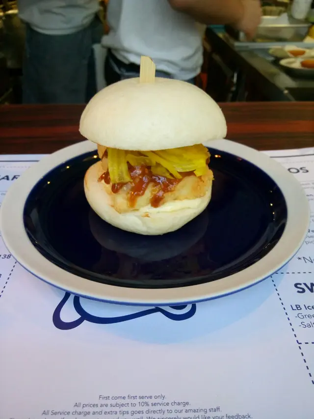 🧐从来都唔钟意食中式包嘅我,对呢间little bao 本来没什么兴趣,不过见男朋友超赞,又陪佢食一次啦。惊喜小食炸薯条,捞左啲黑松露酱之余仲有菇,pickle,炸洋葱同埋一粒粒好香口又林林地嘅黄豆。一啲你谂唔到放埋一齐会咁好味,咁特别嘅食材配搭😍 好花心思(有构思)嘅食谱。我觉得佢系一碟小炒多过薯条。素食burger ,eee原来啲馅同头先食个薯条入面𠮶啲馅系类同,不过咁好味,食多少少都冇坏。至于我至憎食嘅中式包,原来配搭上咁浓味嘅馅料,都几好,而且好易吸收哂啲汁。另一款炸鸡burger ,有我最钟意嘅coleslaw ,好好味好多肉汁,食嘅时候要好小心 ,唔系会烫亲个咀小食,牛肉锅贴😍😍😍又系另一惊喜之作,牛肉馅竟然系好似pullpork 质感嘅牛肉,应该系慢煮/炖,好有心机同诚意,而且好好味。下次再来一定会再点呢样!…ดูเพิ่มเติม