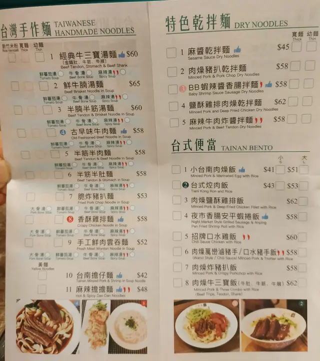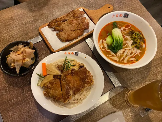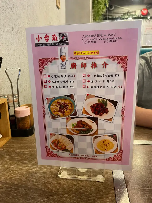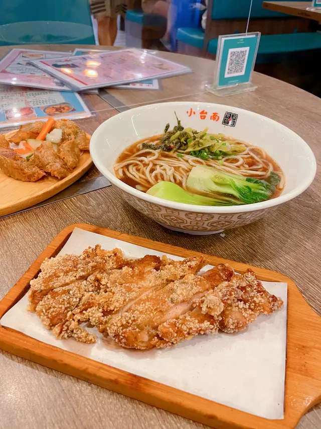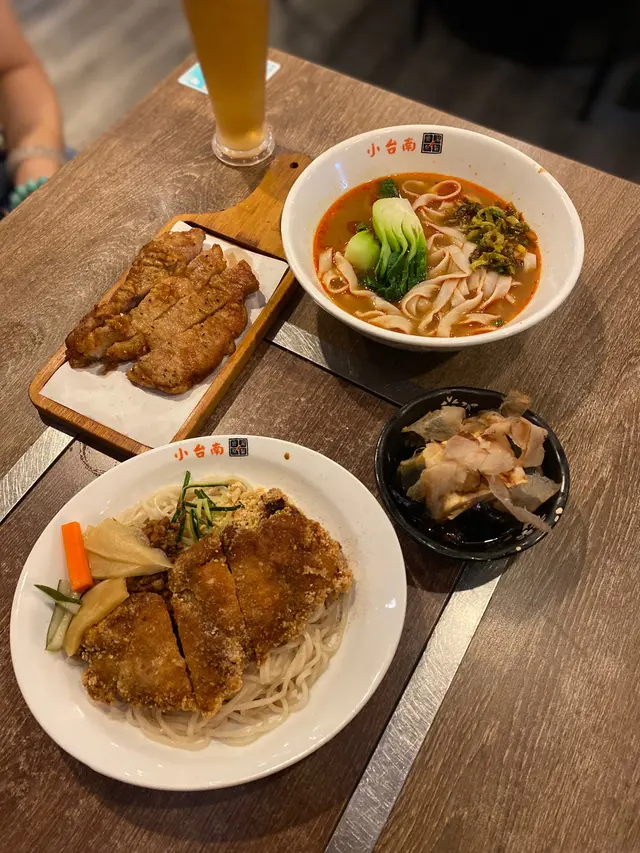 今日同學生一齊去食晏,佢哋揀咗呢間小台南台式餐廳,話夠平夠抵食。在場仲有好多其他學生幫襯,好彩行得快好世界🤪各款午市套餐價錢都非常之超值,大約$50-$70左右,仲包埋飲品,經濟好選擇👍🏼各款套餐嘅水準都好唔錯,特別係炸豬扒同鹽酥雞扒,香脆Juice肉味香濃👍🏼,唯獨是特色小菜套餐配嘅飯唔係珍珠米係絲苗米,有一點點可惜,因為我唔鍾意食絲苗米🤪。午市優惠套餐任意配搭湯麵套餐脆炸豬扒湯麵(寬麵、麻辣湯)$55特色乾拌麵套餐大東鹽酥雞扒拌麵$58特色小菜套餐(跟絲苗白飯一碗)老壇酸菜魚$75麻辣水煮牛肉$68冬瓜茶+6洛神花茶+6 …查看更多