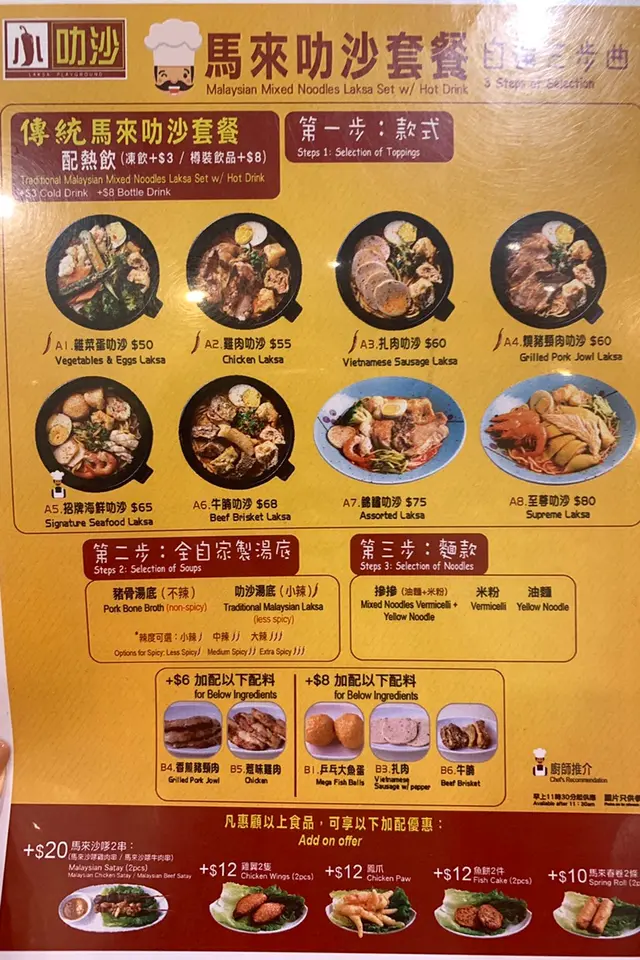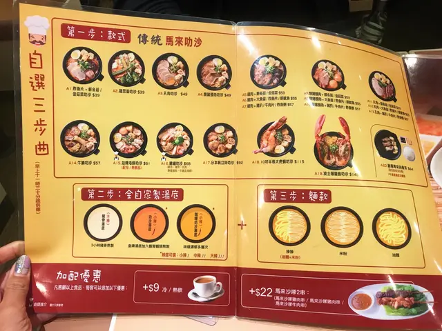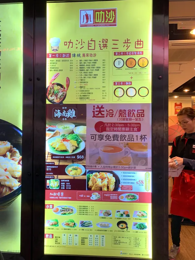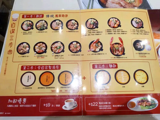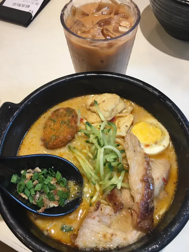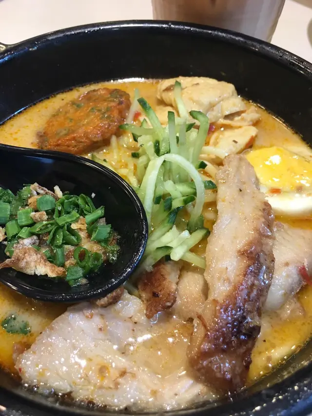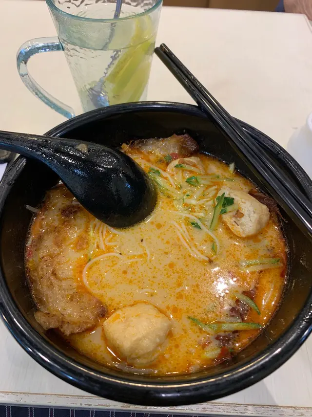 中午行行下見到依間裝修好搶眼,決定入去試下。原本打算食海南雞飯,見到個自選叻沙就即刻改變主意。首先揀咗個豬頸肉叻沙,自選湯底就梗係試下佢皇牌叻沙湯底,最後就可以揀麵款。正宗叻沙係油麵同米粉底,不過個人比較喜歡米粉就選擇淨米粉。等咗10分鐘左右就有,一上枱就有好香的蝦膏味,湯底不太稠,帶小小椰香味,味道較淡。仲有4件勁厚身豬勁肉,不過煎得不算太脆,有小小失色。賣相 3/5口感 3/5味道 3/5番食率 3/5…查看更多