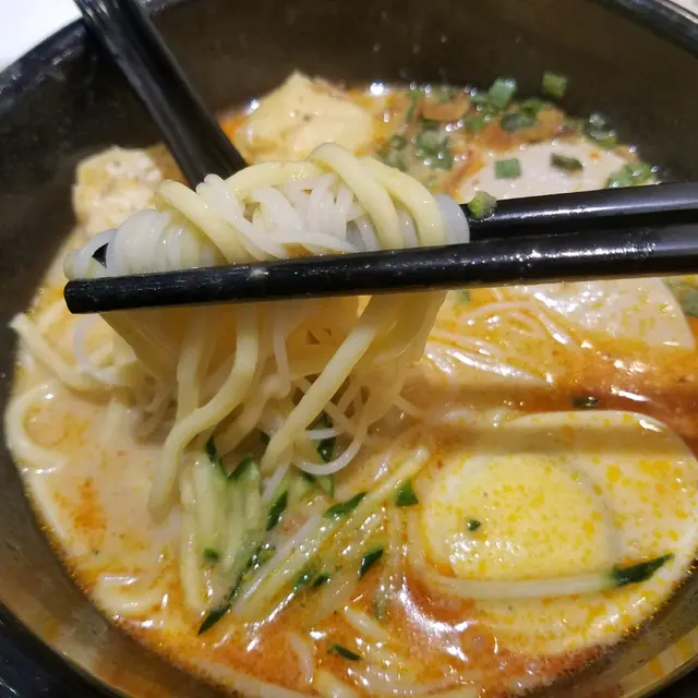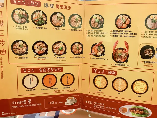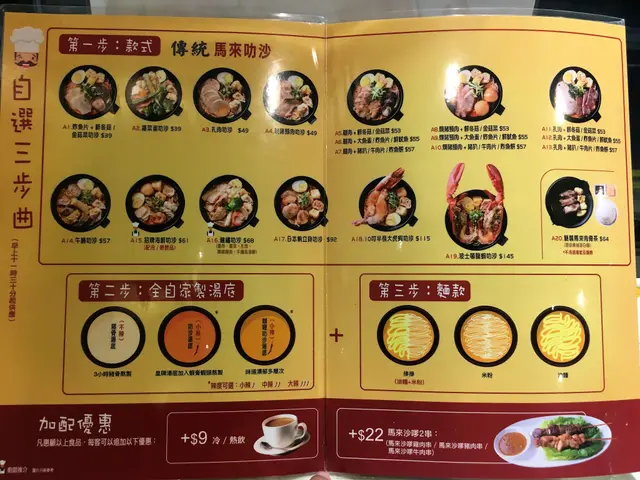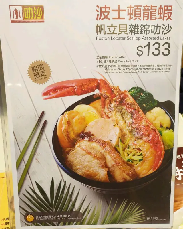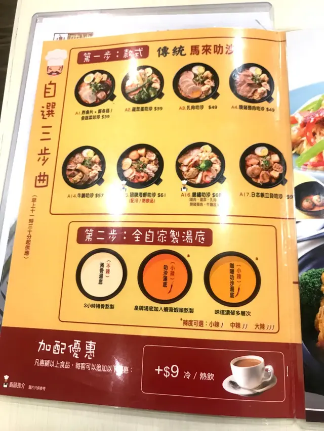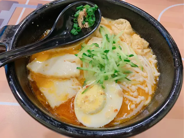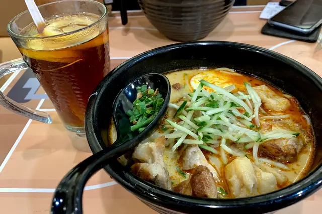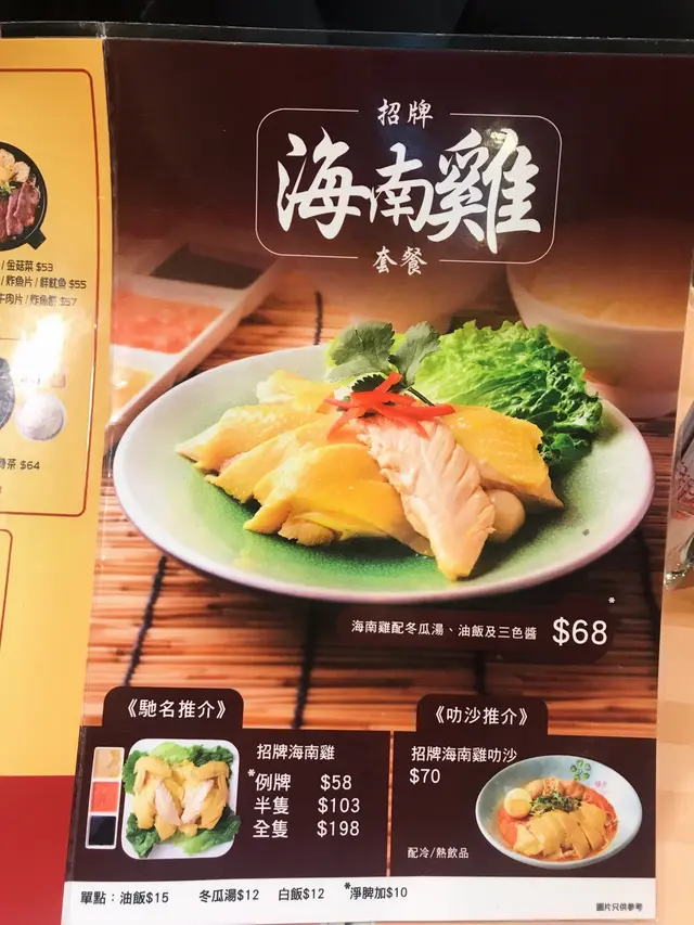 中午行行下見到依間裝修好搶眼,決定入去試下。原本打算食海南雞飯,見到個自選叻沙就即刻改變主意。首先揀咗個豬頸肉叻沙,自選湯底就梗係試下佢皇牌叻沙湯底,最後就可以揀麵款。正宗叻沙係油麵同米粉底,不過個人比較喜歡米粉就選擇淨米粉。等咗10分鐘左右就有,一上枱就有好香的蝦膏味,湯底不太稠,帶小小椰香味,味道較淡。仲有4件勁厚身豬勁肉,不過煎得不算太脆,有小小失色。賣相 3/5口感 3/5味道 3/5番食率 3/5…查看更多