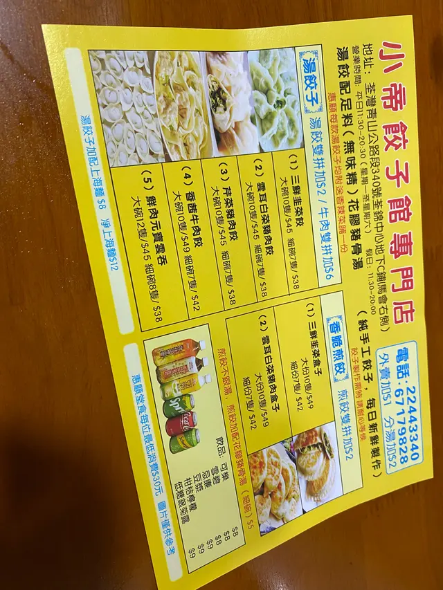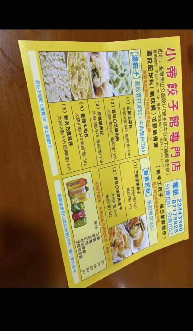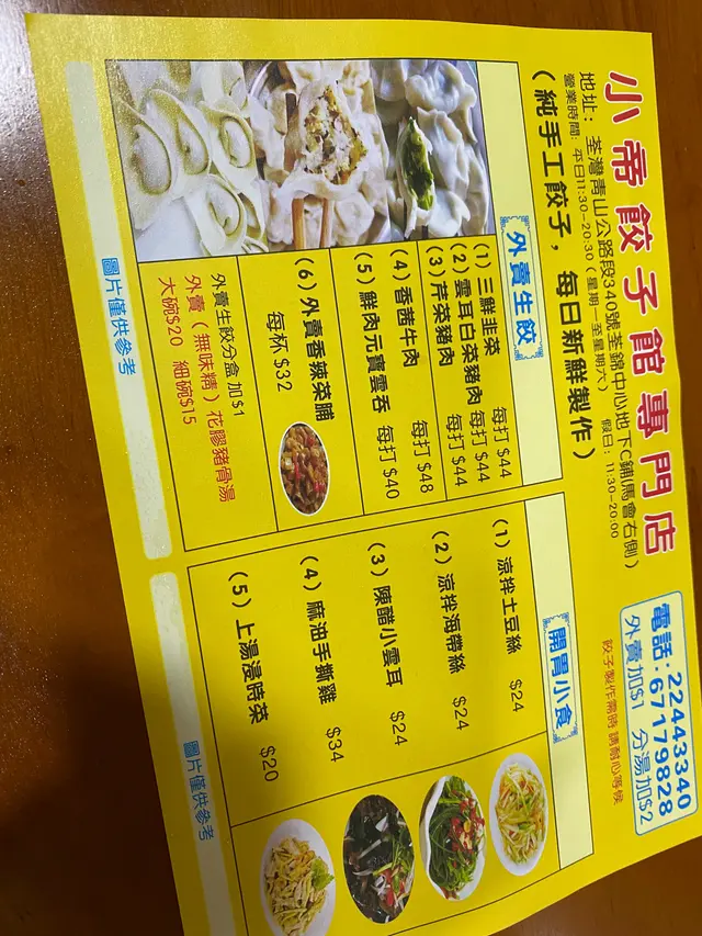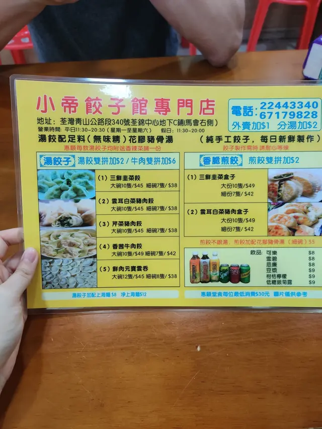 小帝餃子館 (荃湾) 网址: https://s.openrice.com/QrLS0CDWA00 地址: 香港荃灣青山公路340號荃錦中心地下C號舖 电话: +852 67179828