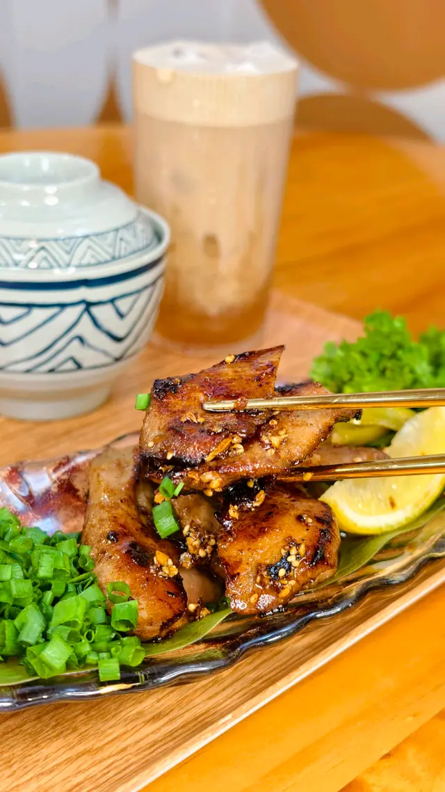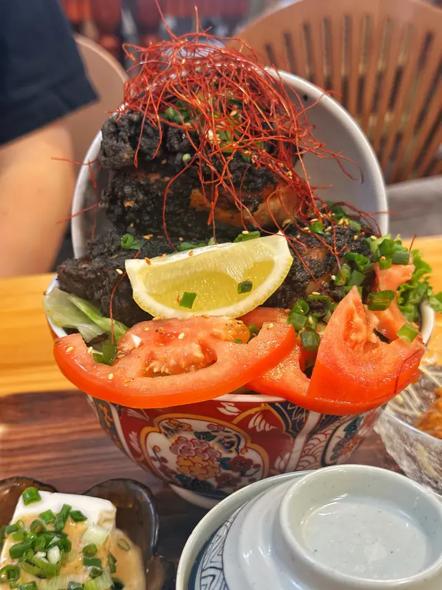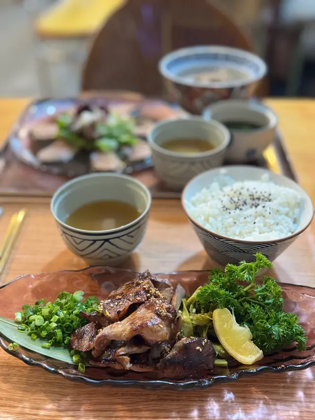 工廠大廈藏住超邪惡黑炭炸雞同雙層芝士蛋糕!仲要每枱必叫😍唔講唔知荔枝角工廠區真係好多寶藏餐廳✨今次發現呢間主打日式定食同甜品嘅日西cafe 「小念頭」,店內其實唔細,但星期六去到下午真係好爆,星期六下晝1點都要排半個鐘,想食真係要早少少衝過去‼️必試推薦👇🔸唏!炸雞丼 (黑炭炸雞配 香橙沙律醬 ($77) (+$8麻醬凍豆腐 +$12涼拌蒜蓉麻醬油麥菜 +$12 日式牛肉薯餅)特色嘅黑炭炸雞,首先份量真係多到滿瀉,成座山咁高嘅炸雞超誇張,打卡一流!唔好以為佢係燒到燶晒,其實外皮脆到不得了,咬落去仲爆汁💦 配埋獨家香橙沙律醬 清新又解膩,勁開胃😍跟餐仲可以加配好多抵食小菜,麻醬凍豆腐、涼拌蒜蓉麻醬油麥菜都好好食架😝🔹香煎牛舌芯(極) 配手漬貢菜 ($92) 雖然比較薄切但超彈牙!蔥粒同醬汁撈埋一齊食真係無得輸,配埋手漬貢菜,口感層次即刻升Level👌🏻老闆話個餐對比之前增量有20%,多幾塊牛舌食😍😍🔸觀音芝士蛋糕 (+$36)呢個真係全場MVP🏆 基本每枱都叫起碼一份芝士蛋糕,真係比定食耽誤咗嘅甜品店🤣雙層芝士蛋糕+茶凍 打卡一流!茶味清新,芝士味濃郁、口感綿滑又唔會太膩,真係要試下😋😋…查看更多