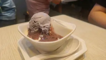 昨天同朋友去咗小方糖食甜品,位置几多,服务员亦十分友善,好像是一家人。朋友叫了黑白配,好像是朱古力雪糕及云呢拿雪糕,配上芝麻糊及西米露,味道不错,以及菜式创新。