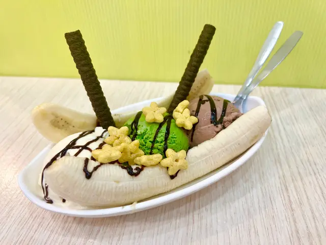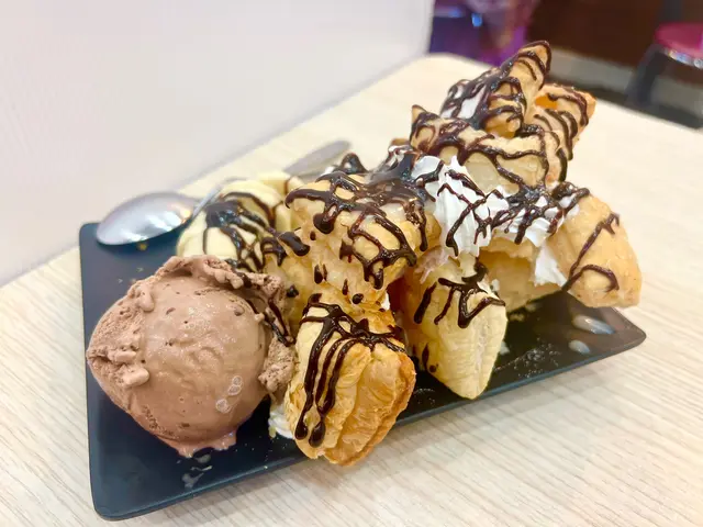 終於得閒過黎店舖食甜品我哋三個人入到黎睇甜品菜單,一路睇一路話呢個又想食果個又想食真係揀左好耐,之後就揀左三款唔同種類食:)第一款係望落好吸引既朱古力粒粒拿破倫,面頭淋左朱古力醬再加好多忌廉配埋香蕉🍌同朱古力雪糕第一啖食落去好鬆脆,加配買香蕉同朱古力雪糕一齊食就好豐富第二款揀左香蕉船🍌因為我地想食多少少雪糕🤭香蕉船配左兩支朱古力脆棒,同埋星星脆粒,小朋友食就最開心最後我揀咗雪糕芋圓仙草凍,芋圓好有咬口,配合牛奶連仙草食又幾夾如果有埋小丸子或者珍珠就更正佢另外都有加少許沙冰食落好多層次正體黎講好滿意如果真係想食多幾款建議唔使食晚飯,直接過嚟淨係食甜品就可以食多唔同種類同款式黎呢個食甜品要預留大半個胃🤭因為又大份又好味查看更多