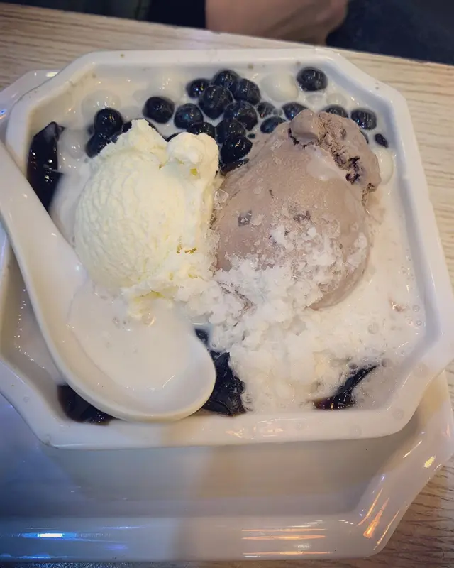 平時行街行到攰都會想搵地方坐下,今次就入咗間糖水舖去休憩下。佢哋有好多特色甜品,同傳統嘅甜品會有啲唔同。🍨黑白配$38顧名思義黑白配即係有齊黑色同白色配,雪糕🍦就用左雲呢拿雪糕配朱古力雪糕,小丸子配珍珠,涼粉配棉花冰。自己覺得小丸子最好味,因為煙煙韌韌好似年糕咁😙🥭泰式芒果黑糯米$38雖然係冬天,但佢哋用嘅芒果都唔會酸👍🏽,黑糯米嘅份量都多🤩食落去軟糯濃稠,而且係少甜,再配合椰漿都唔會話好甜。而且黑糯米有豐富嘅膳食纖維,可以促進腸胃蠕動,預防便秘🤪晚飯後嘅時段成日都會見到好多人排隊👬🏼👩🏽‍🤝‍👩🏻👫,今次係喺晚飯前食,所以會比較少人🤣如果想晚飯後先食嘅朋友就要早啲排隊拎位啦😛查看更多