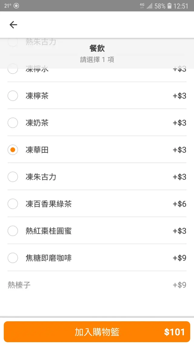 即磨咖啡~套餐另加$6可以作即磨咖啡,雖然是快餐形式落單,先付款後上餐,但仍可選擇餐飲後上,一讚。