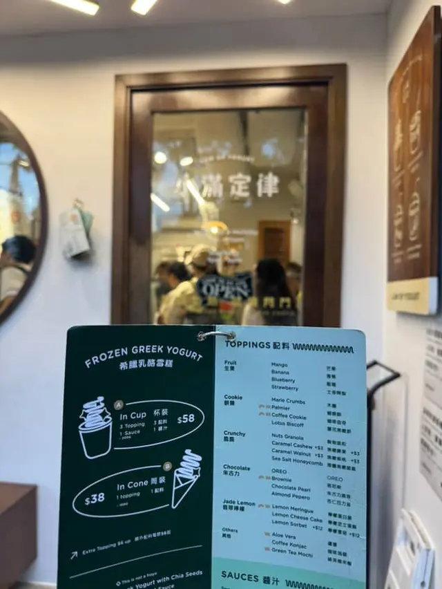 入去西貢玩, 一定要去食雪糕. 呢度幾出名㗎, 成日都要排長龍. 有啲人仲特登去等佢開門. 佢嘅 Menu只有一款希臘乳酪雪糕, 可以揀杯裝或筒裝. 兩款我都試過, 我喜歡杯裝. 價錢係$58包三款Topping 同一個醬. 乳酪雪糕口感唔錯, 味道唔太甜. 再加埋我揀嘅oreo、藍莓、芒果同朱古力醬好yummy. 生果好新鮮, 配搭朱古力醬甜甜地, 十分好味. 人同狗仔都啱食. 天熱食好消暑, 另有一番風味.小滿定律西貢福民路58號高富樓地下3號舖電話:9210 5390西式/雪糕/乳酪…查看更多