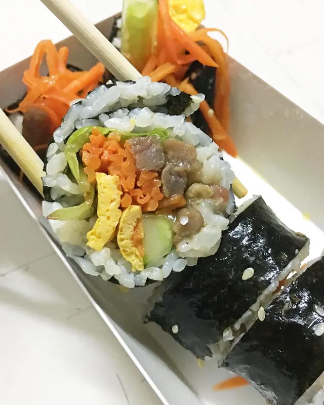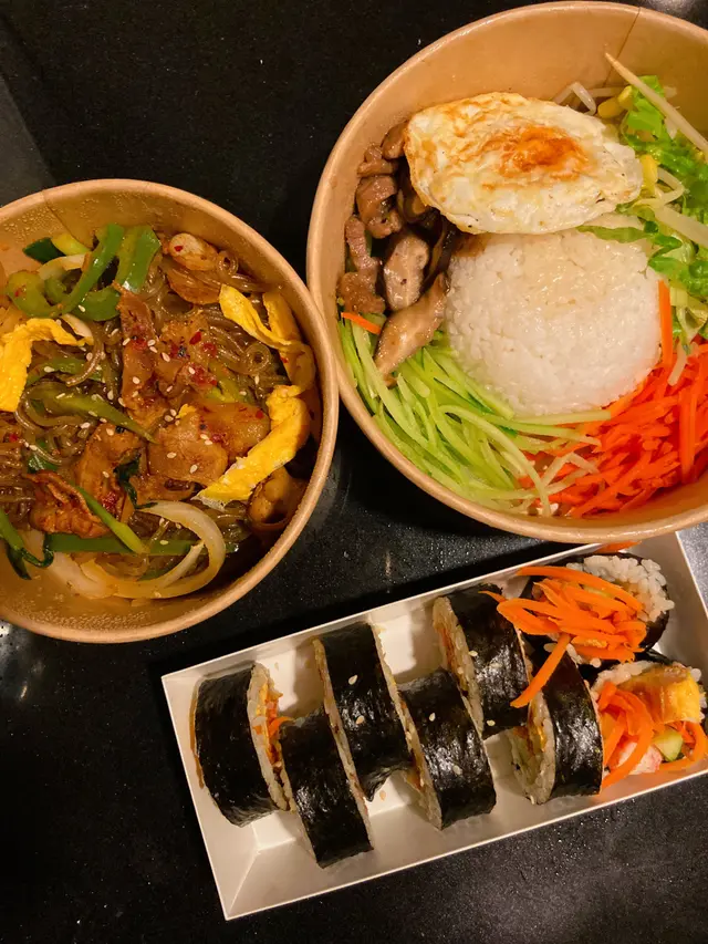近來在追看Netflix 的黑暗榮耀,看見女主角時常方便又豪邁地吃飯卷,才知道原來吃飯卷可以不用沾污手指😂今天就在家附近的韓式外賣店買晚餐,跟男朋友邊吃邊煲劇原味飯卷首先當然要吃飯卷,這間外賣店的飯卷不是用錫紙包,所以不能像劇中女主角那樣吃,還是用筷子吃吧😂選了原味的飯卷,飯卷包得結實不鬆散,口感豐富,味道較清淡。韓式牛肉拌飯賣相非常漂亮,有青瓜絲、紅蘿蔔絲、大豆芽、小香菇和牛肉絲。牛肉絲很香胡椒味,伴隨醬油和其他配菜一起吃,口感和味道層次相當豐富。韓式辣豚肉粉絲辣豚肉讓整個炒粉絲變成微微辣,頗惹味,加入青椒絲亦很搭配。韓樂雞(配甜辣醬)雖然看韓劇應該以炸雞和啤酒作伴,不過吃了飯實在吃不下炸雞,但炸雞寶還可以😁 雞寶即叫即炸,回到家還微微暖,配韓式甜辣醬,未正式開飯就被我們快手KO了查看更多