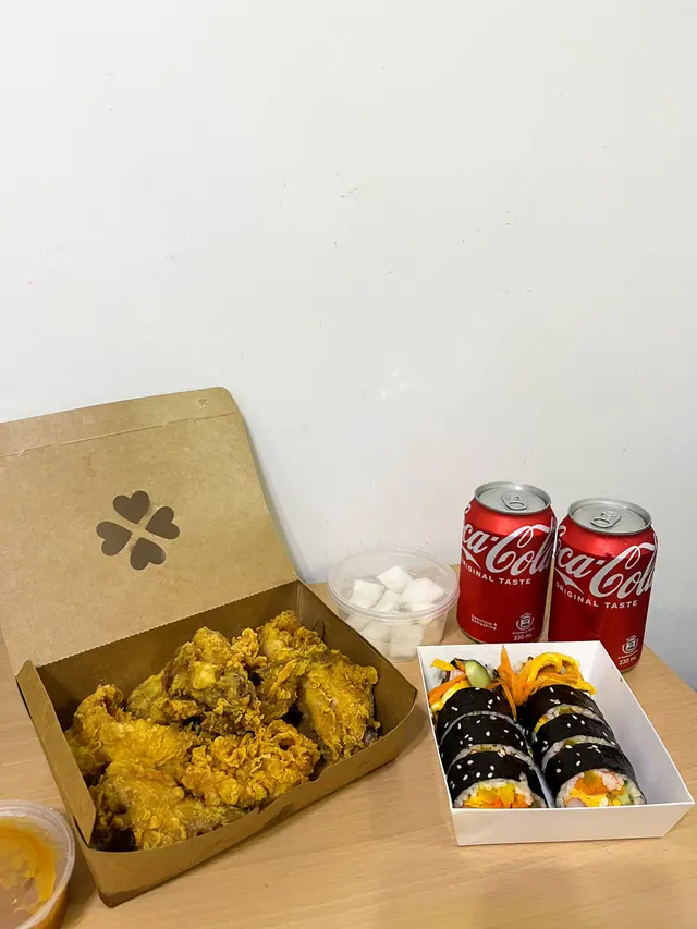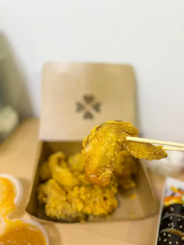 2 人餐:炸雞 🍗6-7件 1款醬汁1款小食飲品 2罐 (即叫即整 新鮮即炸)買外賣到屋企開黎食,都相隔30分鐘時間,但食落口都仲係暖暖地, 外脆內嫩,肉質juice 比想像中好,好過連鎖店炸雞. 炸粉絕對唔厚, 仲要鬆脆口感,係我鐘意嘅炸雞!!!!!!醬汁種類都幾多,共7款口味韓式甜辣醬蜂蜜芥末韓式蔥雞醬韓式蒜味醬韓式辣雞醬泰式辣醬當然點有鐘意嘅蜂蜜芥末醬啦,點完真係冇得輸呀小食🥬 本身以為小食係炸物個D, 原來係韓式小菜, 都有幾款比你擇:韓式泡菜韓式鮮魷魚🦑韓式甜酸蘿萄🥕韓式大豆芽最後擇左鮮魷魚, 雖然份量比較少, 但有韓式醬料+蒜頭, 覺得幾好味, 幾開胃🤤飲品 2罐 會配送兩罐汽水🥤原味韓式飯卷🍙比較傳統式嘅韓式飯卷,有基本青瓜🥒,蛋絲,紅蘿蔔🥕外, 居然有魚乾仔係裡面表面搽上少少麻油,加少少芝麻,令整體味道香口左,不錯不錯👍查看更多