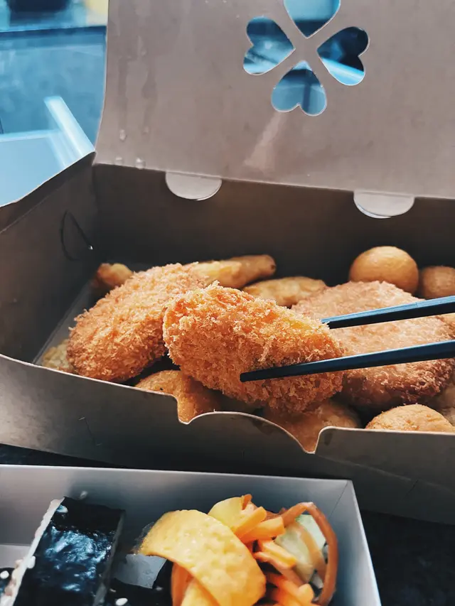 韓式飯卷(燒牛肉)$45日式咖哩拉絲芝士吉列豬扒飯$56香芋蕃薯波波$20韓國柚子茶+$2韓國檸檬蜜+$2好味指數:😋😋😋😋抵食指數:💲💲💲💲💲環境衛生:🧹🧹🧹🧹服務質素:💁🏼‍♀️💁🏼‍♀️💁🏼‍♀️💁🏼‍♀️💁🏼‍♀️推介原因:昨晚放工在葵涌一間婚紗👰‍♀️店試婚紗,試完已經8時多,回家煮飯就太晚,所以決定買外賣。很久沒有吃過韓國🇰🇷菜,剛好見到婚紗店附近有間韓國料理外賣店,價錢不貴,就試試。跟男朋友二人點了3款食物,2杯飲品,不用$130,超值!店員好好呀,原本告知已沒有燒牛肉飯卷,但見到我真的好想吃的樣子,就專登為我另包一條,感動🥹從外賣🥡店回家約45分鐘,但外賣仍是溫暖的。紙盒設計好好👍🏻,四葉草🍀好看,而且可以疏氣。我們享用時,所有炸物仍是脆脆的,沒有任何倒汗水。吉列豬扒中間夾著芝士,好邪惡。咖哩飯用珍珠米,有咬口。香芋蕃薯波波外層脆,又有軟糯的感覺,香芋夠綿密,下次一定會再買。韓式飯卷的牛肉燒汁味夠濃,微甜的,不咸。牛肉夠腍。另配有蘿蔔絲、蛋絲、生菜🥬。一盒有8件。檸🍋蜜經常在茶餐廳喝,但今次是第一次試韓國檸檬蜜。原來是柚子茶加了檸檬,酸酸甜甜,個人認為味道比普通柚子茶更好。值得一提是可以用WhatsApp 下單,減省等候時間。但提提大家,不要輕易取消訂單,讓外賣店有損失呀!查看更多