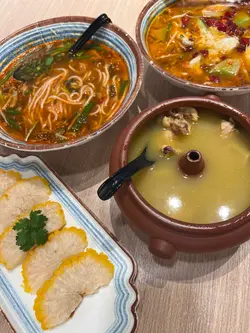 岩岩睇完舞台剧,肚仔打鼓,同朋友冲咗去食云南米线。今次试咗个气锅鸡二人套餐,超级丰富!个套餐除咗主角气锅鸡,仲可以拣一款小食、两款主食、一款主菜同两款甜品。小食我哋拣咗凉拌金耳,系云南直送,口感爽爽哋,酸酸辣辣好开胃。个气锅鸡真系冇得顶!原盅炖出嚟,汤色好清,饮落好甜好润,一啲都唔油。鸡肉炖到好淋,一夹就散,但唔会烂晒,仲好滑溜。饮完成个人暖笠笠,好舒服。主菜叫咗滇池酸菜鱼,鱼片滑溜溜,酸菜够入味,汤底酸中带辣,饮咗几啖已经流晒汗,好过瘾!主食就要咗金牌小锅汤米线同白饭。米线汤底好鲜甜,配酸菜鱼汁捞饭简直一流。甜品试咗彩虹芋圆冰冰粉同玫瑰冰冰粉。芋圆QQ哋,冰冰粉滑捋捋,食完辣嘢再食呢啲冻甜品,真系透心凉!今餐食到好饱好满足,呢个套餐份量足,味道正,下次一定会再嚟!…查看更多