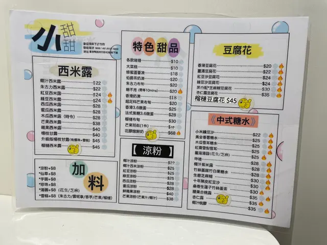 小甜甜位於鴨脷洲大街的小甜甜是一間深受街坊喜愛的貼地甜品店,主打中西糖水與小食。店內環境簡潔溫馨,價錢親民,份量實在。窩蛋 $68以香脆雞蛋仔作底,配上兩大球雪糕,是其他地方少見的甜品組合。雞蛋仔香脆蛋香味十足。搭配雪糕選擇了開心果及曲奇,香滑濃郁又唔膩。雪糕配上雞蛋仔一同入口,層次豐富,口感超滿足。益力多沙冰 $25酸甜清爽,滿滿益力多味道,令人勾起童年回憶。甜品簡單卻令人回味,正是街坊小店的迷人之處。…查看更多