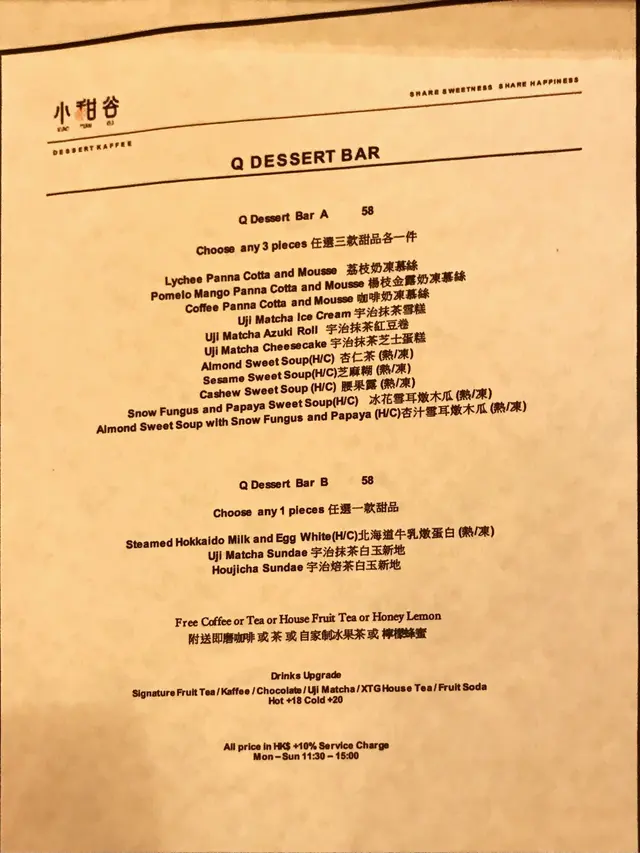 小甜谷 Dessert Kaffee (铜锣湾) 网址: https://s.openrice.com/QrLS0zec3W0 地址: 香港銅鑼灣謝斐道482號信諾環球保險中心地下4-6號舖 电话: +852 23250208