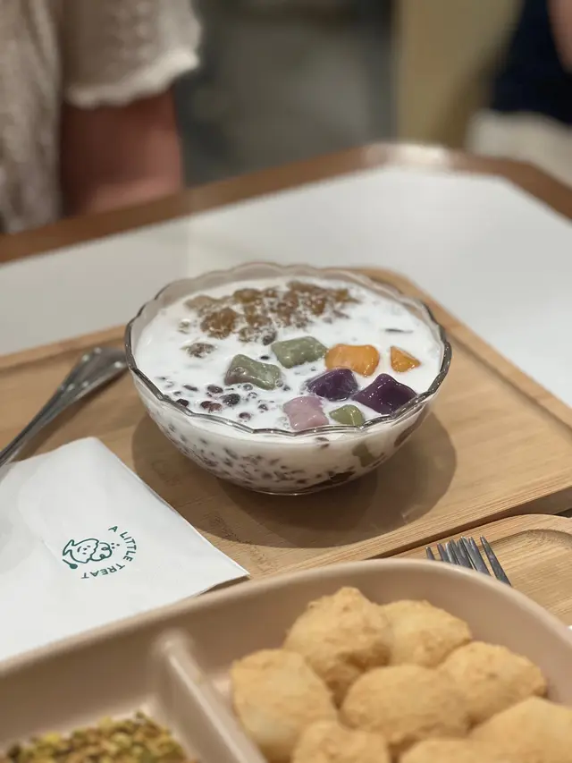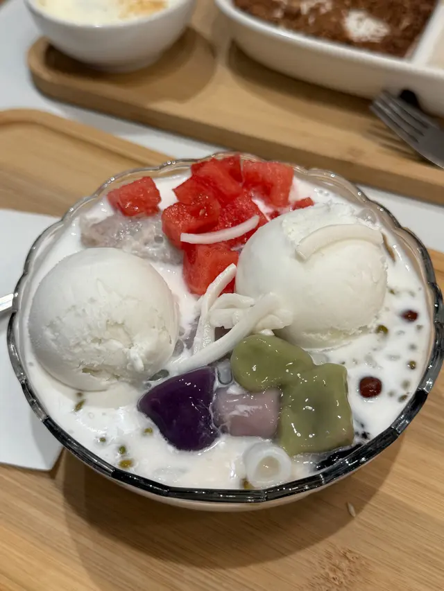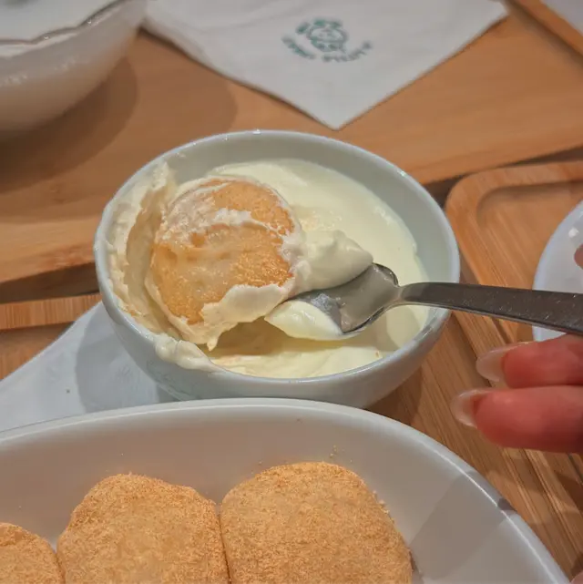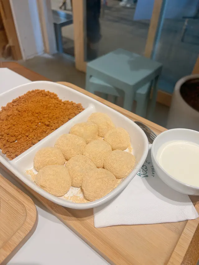過嚟食之前係比呢間店嘅麻糬吸引咗😍睇到相覺得非常打卡able!! 呢間店係小清新風格..Menu設計都好得意😌比起一般甜品店 呢間小店更似係一間cafe🤭甜品方面有唔同嘅系列 除咗有啲經典選擇之外仲有布甸, 麻糬,刨冰,特色飲品等等🥄🍧🍮 揀食咩嘅時候 真係好苦惱😩因為太多野都想試 揀咗好耐至揀到🤣今次試咗3樣甜品:Mochi系列🥄 $55開心果碎碎. 開心果奶蓋沾醬麻糬💚實物勁勁勁吸引 開心果迷表示興奮~🤩有滿滿嘅開心果碎碎 配埋開心果醬再望到圓軲轆一粒粒嘅麻糬 真係不能抗拒🤣呢個價錢嚟講 有成10粒麻糬 真係非常之抵麻糬口感煙靭 食落唔會黏住嘴仲有淡淡嘅黃豆粉香~~本身麻糬冇甜味 配埋個醬食就啱啱好👌🏻唔會太甜 加埋開心果粒粒 perfect match😳Pudding系列🥄 $40個配色好靚😍😍😍椰子雪球斑蘭奶凍🤍椰子味🥥雪糕👍🏻👍🏻👍🏻🌟斑蘭奶凍味道較淡 不過口感香滑,細膩 🤤Snowflake Ice系列🥄 $72特濃朱古力冰🤎天氣咁熱😮💨係食冰嘅好時候!!店員推介咗朱古力味.. 所以就試吓朱古力冰個賣相好靚😍呢間心思小店連頂頂嚿香蕉片都花咗小心思 係面做咗浸焦糖😳🫡食落除咗有極濃朱古力味 而且口感綿密 入口即化下次都會想試埋其他味 份量好多 2人食好飽👀*要食快啲 冰溶得快🧊呢間絕對係一閒會encore嘅小店大圍嘅街坊有口福了 🤤(我本身唔係住大圍 而且覺得大圍有啲遠如果遲啲開其他分店就好了)睇得出小店係店舖/甜品設計都花咗心思用心經營嘅小店好值得大家支持🫶🏻❤️🔥重點係價錢非常親民 一啲都唔貴😹…查看更多