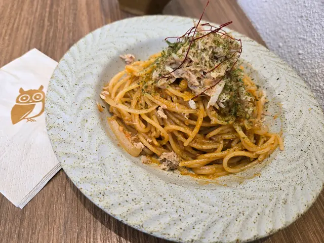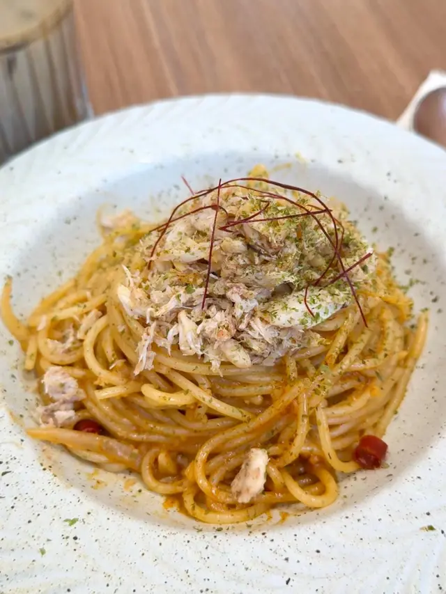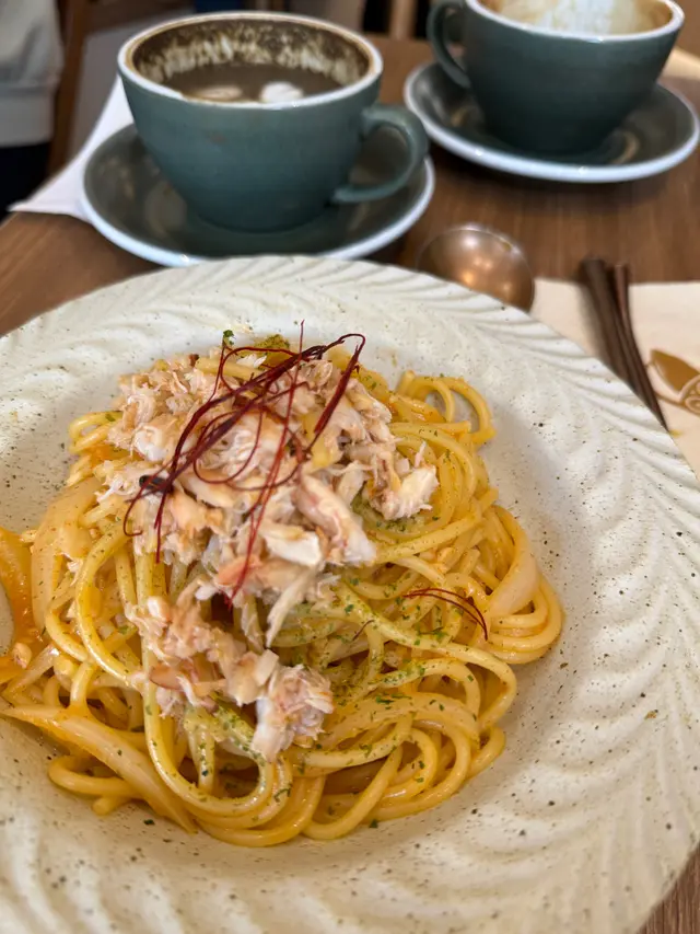 餐廳的裝潢設計簡約而溫馨🥰門面採用淺木色系 店內則以深木色系為主調搭配招牌的貓頭鷹裝飾 風格獨特又可愛~📌蒜蜜蟹肉意粉酸酸辣辣再加上蟹肉的鮮味🤩蟹肉份量超多 多到滿瀉!超有驚喜!意粉上滿滿的醬汁🍝入口味道濃郁手工意粉口感煙韌 性價比超高🥹✨絕對會因為這個意粉而專程回來再吃!後來看到蟹肉意粉原來是小確幸的招牌👍🏻📌焙茶Latte好喝!聞起來帶一點烘烤味喝完後還會回甘🫶🏻而且店員很有禮貌 態度友善✨讓人吃得開心又放心🥰🙌🏻值得一試!…查看更多