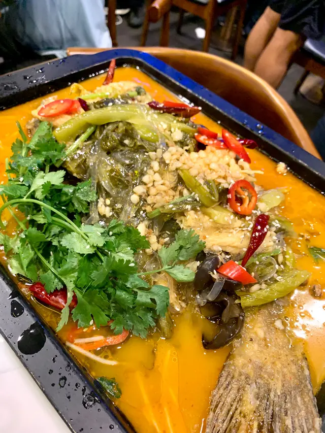 .朋友介紹黎呢間食烤魚,食到我捧住個food baby走😋酸菜江團魚 ($288)好大份!好大條魚!賣相好吸引!勁香!我地想食少骨既魚,店員介紹我地食江團魚,魚滑少骨,果然好介紹!成條魚有炸過,魚肉好嫩滑、冇咩骨,勁厚肉好肥美,索哂酸菜湯,入哂味,味道酸酸甜甜。我地揀左酸菜底,有海量酸菜、少少辣椒仔、雲耳、豆卜、枝竹、冬粉,湯底夠酸,微辣,好香酸菜,超足料超惹味超開胃👍🏼仲奉送兩碗白飯同兩杯熱飲。避風塘炒蝦 ($108)都係店員推介,避風塘小菜都係佢地既撚手菜,一上枱已經聞到好香炸蒜味。蝦既份量好多,全部開邊炸,啲蝦殼炸到脆卜卜,食落係咸咸地甜甜地的,連埋蝦殼食更惹味,口感更豐富😋金銀蛋肉碎浸菜苗 ($62)好耐冇食過了,都係大大份,好抵食,好多皮蛋粒、咸蛋粒、肉碎,足料到不得了,菜心都幾好食,食完上面啲重口味野要食下菜中和返🤣脆爆阿華田 (+$13)正正常常,唔會好甜~雜果賓治 (+$13)都有好多椰果、菠蘿粒,好耐冇飲過fruit punch,甜甜地好解渴~我地平日六點半黎都見到坐無虛席,好多人都食雞煲或烤魚,下次可以試下雞煲🤤呢到冷氣都好足,散氣都好好,食完成身都唔會一浸味👍🏼店員個個都好有禮貌又會介紹啲小菜比我地👍🏼讚呀!.味道 ★ ★ ★ ★ ☆環境 ★ ★ ★ ★ ☆服務 ★ ★ ★ ★ ☆性價比★ ★ ★ ★ ☆.查看更多