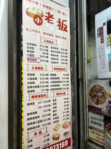 #20241017 🤍📍 #小老板北角炮台山电气道254号华凯大厦地下A5号舖 🍽️西湾河筲箕湾道57-87号太安楼地下A72A号舖➖➖➖➖➖➖➖➖➖➖➖➖➖➖➖➖➖#生煎饱 $12/3只💭 听闻呢度嘅生煎包出名好食,所以慕名而来试下,食落都有啲香脆,面头有啲葱,所以葱油加埋几香口,入面料唔多,但胜在一只4蚊几抵食~.#生煎锅贴 $12/3只💭 本身无谂住试佢,系比完钱等左阵点知生煎包卖哂咁滞,所以被逼换咗两只锅贴返尼😒咬落会一下爆哂啲汁出嚟好得人惊,平时食其他地方啲煎饺唔会咁夸张😱入面个馅就麻麻地,有啲粉色,个皮煎得够哂靓但入面明显跟唔上熟唔透🥟.#菜肉蒸饺 $28/5只💭 呢个简直系大伏🙃等左8-10分钟以为即蒸会好好,等到连比左钱既生煎包都卖晒比其他人😐点知一咬落去见到啲肉好粉同埋啲皮系生生地,食到啲肉仲有腌过嘅酒味,真系一只食唔完就可以放弃了🥶.#北角美食 #🐷在北角 #西湾河美食 #🐷在西湾河 #🐷_食 …查看更多