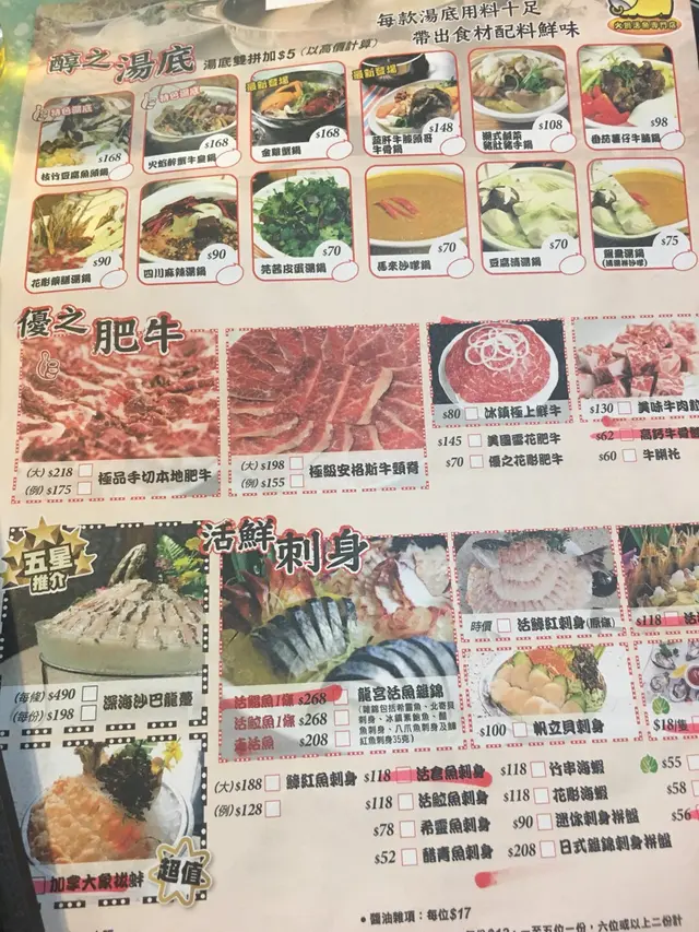 物有所值,但欠有漏單情況,服務可以,三五人聚會都可以,8過人以上就要考慮。環境,食材質素是可以的。推介炸魚皮,響玲,堅新鮮及即做,有熱的感覺,牛肉、豬肉放題材料,真的物有所值,丸類材料都是必食東西。一次性的海鮮拼盆質素高,各式材料真新鮮,龍蝦啖啖肉,生蠔清潔,因為我食了一個半生熟的,翌日都沒有肚痛或疴的現象,真人經歷,沒有吹水。特別推介八爪魚,極鮮味又爽口,蜆全部都開口及鮮味。整體來說,此店可以的。…查看更多