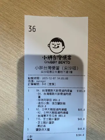 呢日喺尖沙咀同班同事揾餐厅食个late lunch,我哋嚟咗呢个台式便当嘅专门店,叫咗啲便当同台湾小食share嚟食🍱台湾铁路大排骨卤肉便当呢个系餐厅嘅其中一款招牌菜,面头有超大块嘅酥脆大排骨🐷 入面仲有半肥瘦嘅卤肉,超好𩠌饭,真系好有台式风味。麻辣鸭血卤肉汤宽粉个人几钟意食鸭血,呢度嘅鸭血绝对冇令我失望,入口嫩滑,而且麻辣嘅味道同宽粉好夹,入口都几爽弹🍜台南花枝卷卤肉便当系期间限定嘅新品,面头有台南嘅花枝卷,中间嘅花枝馅几弹牙。侧边同样系有卤肉同埋卤蛋🥚小食♦️盐酥炸大肠每一件炸大肠都非常厚身,而且外层好酥脆,入口唔会太肥腻,重点系佢完全冇内脏味,清洗得好干净🥰♦️小食拼盘入面有四款小食,包括九层塔鸡翼、夜市盐酥鸡、盐蒜四季豆同埋梅香脆地瓜😙 啱晒三心两意嘅我哋。♦️芋泥肉松蛋饼呢个系餐厅另一款招牌菜,蛋饼入面有好绵密嘅芋泥同埋几惹味嘅肉松🍳 芋泥略带点甜味,同带咸味嘅肉松相映成趣。饮品呢度有几款台式饮品,款款都好吸引。我哋嗌咗招牌嘅珍珠奶茶,珍珠烟烟韧韧🧋 另外仲有冷泡茶,凤梨绿茶有淡淡嘅凤梨后劲🍵呢间餐厅真系几抵食,每碟嘅份量都好大,一定会够饱,仲可以食啖啖经典嘅台湾滋味 。喺尖沙咀返工嘅朋友好值得嚟食吓😄…查看更多