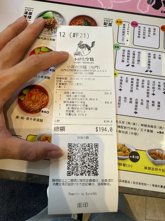 🍅noodles in tomato broth濃番茄大骨湯麵chewy handmade noodles in a rich, tangy tomato broth. portion is huge, and u get to customise ur toppings! highly rec the egg dumplings, abalone, hanger steak & braised egg. oyster pork roll is p special. or u can get tw classics like duck blood or intestines rmb to add their homemade beef butter for an extra creamy touch手工麵超Q彈,番茄湯底濃郁帶微酸,份量超大!配料自選必試蛋餃、鮑魚、封門柳同滷蛋~蚵仔肉卷好特別,仲可以加經典台灣料如鴨血/大腸記得加自家製牛油,湯底即刻升級超creamy!🐮taiwan beef noodles半筋半肉紅燒牛肉麵hands down one of the best we’ve had! the broth is so flavourful, the beef is melt-in-ur-mouth tender, and the beef tendon is rlly bouncy. a must-try!暫時食過最好食嘅牛肉麵之一!湯頭超香濃,牛肉嫩到入口即化,牛筋又彈牙,絕對要試!🍗salt & pepper chicken夜市鹽酥雞another tw resto must-order snack. so crispy & juicy台灣餐廳必點小食!外脆內嫩超多汁🧋peach oolong bubble tea白桃珍珠烏龍茶love the texture of boba+ tea isn’t too sweet珍珠口感完美,茶底清香唔會太甜🍋handmade lemon tea鴨屎香手打檸檬茶dad had this & he loved how strong, fragrant & refreshing it was茶香濃郁又清甜💵 人均:$50-150評分:8.5/10回訪? yesss🚏 小胖台灣麵 Chubby Noodles屯門H.A.N.D.S A122號舖(尖沙咀/沙田都有分店)🅿️ 商場免費泊車✍🏻 記得下載「小胖會員app」儲分換優惠,新會員有迎新禮遇同升級折扣!…查看更多