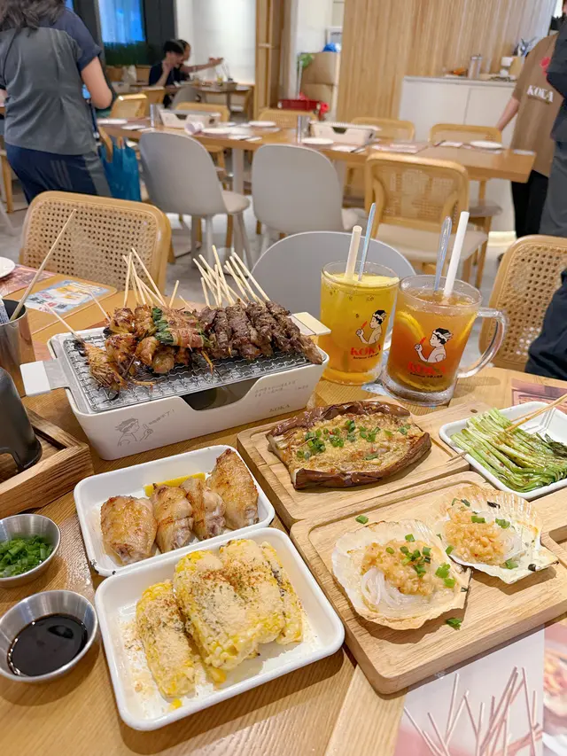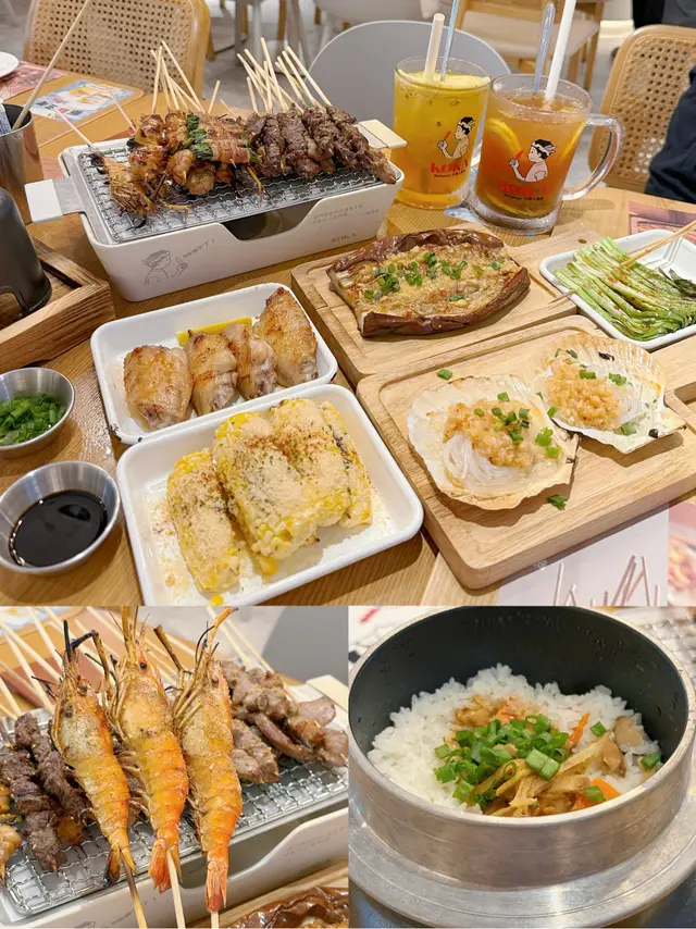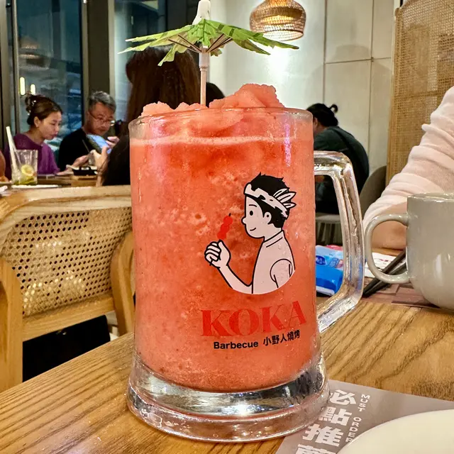 收工後,同屋企人去咗將軍澳「KOKA小野人」食串燒,成檯串燒堆得滿滿,勁吸睛,最鍾意依度有得睇電視,同埋設有自助吧提供凍水、暖水俾客人。*此餐廳收取全單10%服務費。烤新鮮大頭蝦3串(單點$59.4),小辣,好大隻,蝦膏味道甘香,蝦肉肉質爽彈,味道鮮甜。小野人蘑菇雞肉野炊飯(單點$58),採用特選日本珍珠米、雞腿肉、冬菇、紅蘿蔔、薑絲、香蔥、特別調製配飯醬油製作,食落類似北菇滑雞飯,每一啖都食到好足料,底部帶有飯焦,食落脆卜卜。北海道蒜蓉粉絲大扇貝2隻(單點$53.6),走辣,表面鋪滿蒜蓉、香蔥、粉絲,扇貝食落好新鮮,略嫌比較細隻。燒雞腿肉串4串(單點$43.2)。燒墨魚滑釀青椒(單點$41.4)。燒翠玉瓜串5串(單點$39),小辣。燒雞腎串5串(單點$39),小辣,口感爽脆,食落好惹味。燒小黃花魚(單點$38),小辣,燒得皮脆肉嫩、色澤金黃,食落好香口。燒墨魚丸串4串(單點$31.2),小辣。小野人蒜蓉燒茄子(單點$29.8),小辣。燒小番茄豚肉捲1串(單點$28),小辣,豚肉片包裹住車厘茄,一食即刻爆汁,味道清新。小野人燒雞翼2隻(單點$27.6),表面鋪有蜜糖、芝麻,食落甜度適中。糖燒牛奶方包2串(單點$18),牛奶方包口感外香脆內鬆軟,配以煉奶、蜜糖、牛油、砂糖、黑芝麻食用,味道香甜。元氣森林水果茶(單點$38),少甜、少冰,採用菠蘿、熱情果、檸檬、青檸、薄荷、蜜香紅茶製作,味道酸甜。@koka.asia.hk KOKA小野人地址:香港將軍澳澳南海岸唐俊街23號MONTEREY Place地下G25A號店舖…查看更多