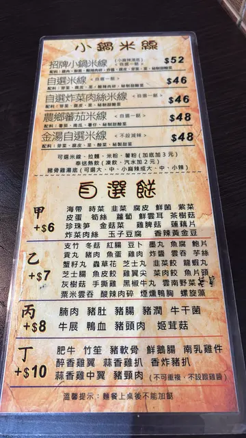 元朗小锅米线的用餐体验令人回味!汤底浓郁,带有淡淡的香菇和蔬菜鲜味,米线弹牙,配上青菜和菇类,口感丰富。旁边的炸鸡亦是亮点,外脆内嫩,味道香浓,与汤面形成完美搭配。环境热闹,服务快捷,适合与朋友聚餐。价钱合理,$46-$50不等,性价比高。整体而言,是一次满足的美食享受!