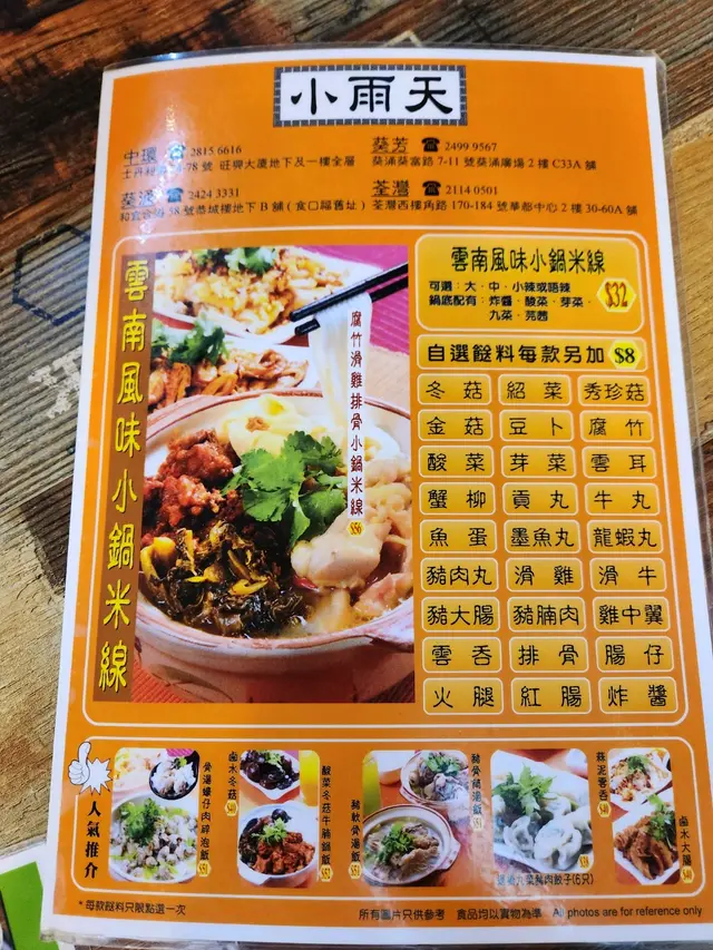 小雨天小雨天屹立咗喺葵涌廣場超過15年以上10年前喺葵芳做嘢嘅時候已經經常過嚟無論午餐下午茶,晚餐都非常多人佢哋呢度嘅服務非常之一般食物亦都不過不失唯一可取嘅係佢哋嘅位置非常之咁好葵芳不嬲都唔係好多嘢食主要都係新都會同埋葵涌廣場而佢就喺2樓對住天橋地鐵一出經過新都會過到嚟葵涌廣場就即刻係佢啦佢好多款式亦都出餐好快可算係呢一帶嘅快餐龍頭眼見大家都係食佢嘅米線佢價錢喺呢一帶嚟講,算係好平米線50蚊有交易,都好大碗好多飯類都係50幾算係好有性價比佢嘅胡椒湯亦都係街坊喜愛之一今日我食嘅係酸菜冬菇牛腩飯$54凍飲加$7佢地品質唔穩定,有時炆的好淋有時好硬,硬過我條命😤佢哋⋯好需要改善嘅係佢哋嘅服務雖然唔係呼呼喝喝但總係覺得好唔友善咁多年都係咁就連收銀嗰兩老,唔知係咪老細一樣都係咁衰😂人均消費:午餐$50-$100好味:⭐️⭐️⭐️ 環境:⭐️⭐️⭐️ 性價比:⭐️⭐️⭐️ ⭐️小雨天 (葵芳)葵芳葵富路7-11號葵涌廣場2樓C33A-C37號舖…查看更多