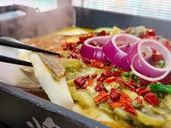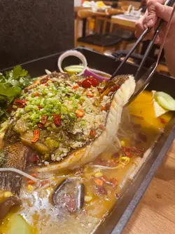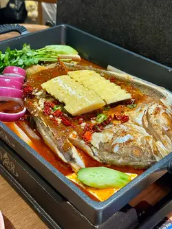 尖沙咀🚇嘅小魚兒一直質素都唔錯而且都好高CP💰,最近佢哋仲推出多重優惠絕對係抵食之選🎉:星期日烤魚半價、$28金錢牛腱同封門柳、星期日至星期四$99一位任飲生啤🍺,而且訂座仲有八折優惠👏。餐廳入面空間寬敞開揚😌,又設有多人桌椅,絕對係朋友聚餐👍或者家庭聚會嘅好去處😆!烤魚🔥絕對係小魚兒嘅招牌必食單品,除咗多款辛辣🌶️口味之外,亦都有完全唔辣嘅選擇,包括黃金特濃蒜香豆花🧄、老壇酸菜豆花🥬、濃湯花膠雞🐔、藥膳花雕醉雞🍶等,照顧唔同口味需要😊!我哋揀咗海鱸魚🐟配鮮花椒BB豆花底🌶️,辣度麻度都可以任你揀🌟!一上檯已經嘩一聲,🐟原條海鱸魚勁大條😍,魚肉燒得恰到好處外皮微焦💥,內裡鮮嫩滑溜🥰,完全無細骨啖啖肉👅!入邊除咗有原條嫩滑嘅海鱸魚,仲有香嫩嘅豆腐花💫,吸哂烤魚香辣湯汁,口感順滑入味😚!配埋好煙韌Q彈嘅寬粉🥢,每條都掛滿濃郁湯汁🥄,越食越過癮🤤!花椒嘅麻香配埋微辣感覺層次豐富🔥,絕對係川菜嘅精髓所在✨!$28封門柳💰真係絕對超值,肉質嫩滑帶少少油花😋,放落去烤魚湯底淥一淥就食得,🥩十分之有牛味!椒鹽鴨血我都係第一次食,🦆鴨血切成小粒,外層炸至金黃酥脆,內裡軟滑嫩口💧!椒鹽調味香濃🧂,帶有微微辣味同蒜香🧄,口感爽脆惹味🤤,係好特別嘅川式小食🔥!蒜香燒茄子🍆用上整條茄子燒製,茄子肉質軟綿🥰,配上大量爆香蒜蓉🧄,蒜香撲鼻而來,🤩係健康又美味嘅素食選擇!…查看更多