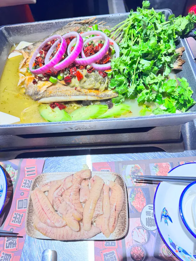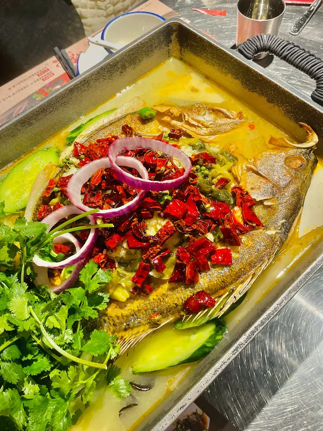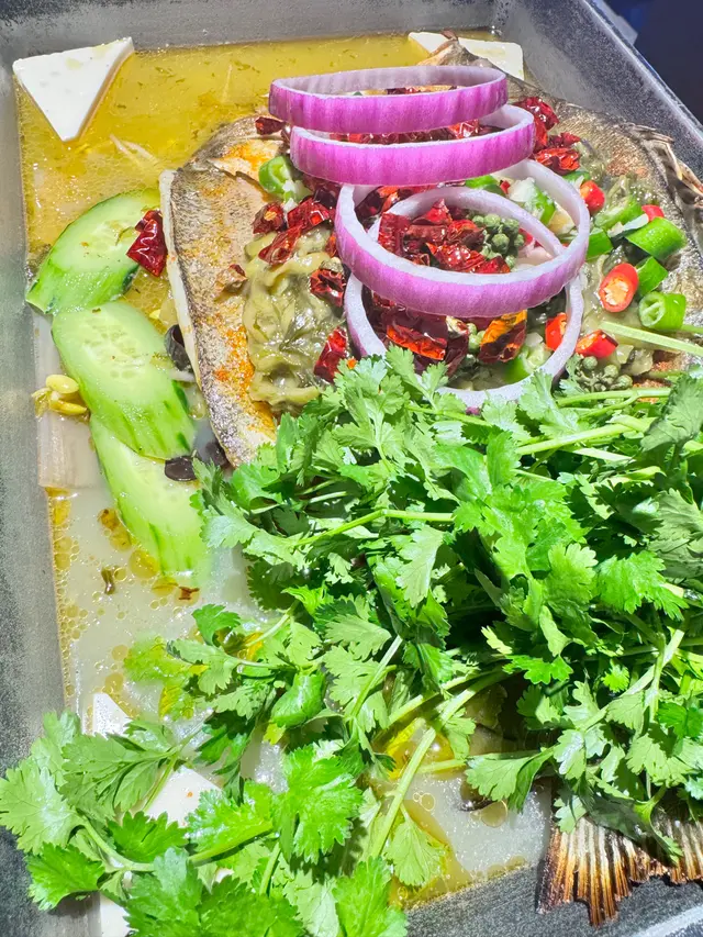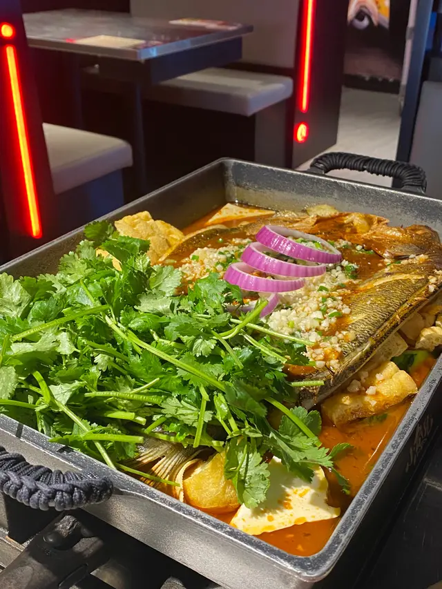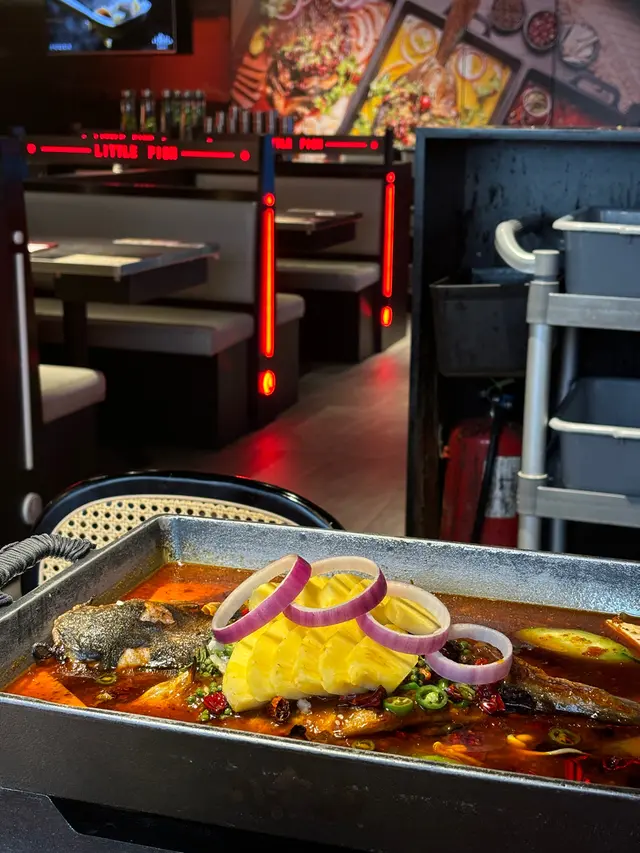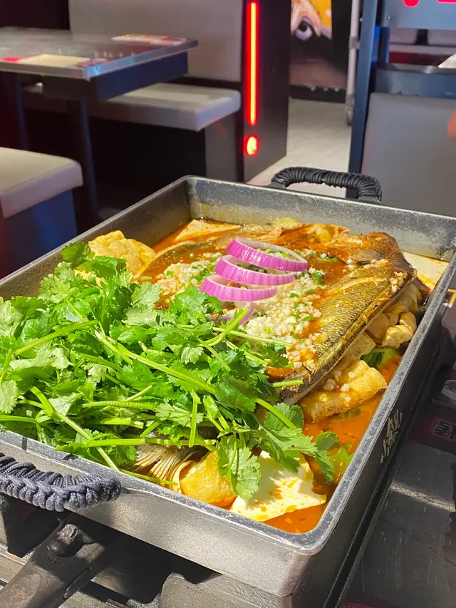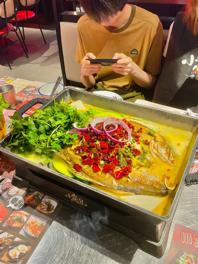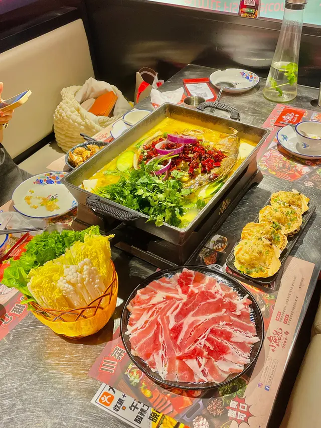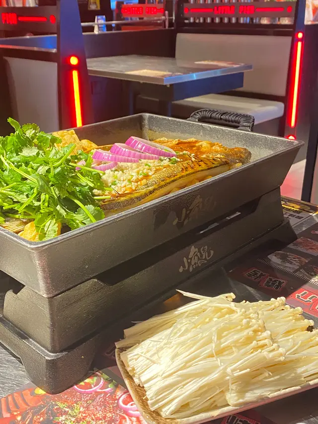 最近去咗銅鑼灣「小魚兒」食晚飯,一定要Order個招牌菜:烤魚試下先,另外,再試下佢哋嘅燒物出品如何,估唔到燒扇貝CP值都幾高。*此餐廳收取加一服務費。海鱸魚(單點$308),老壇酸菜豆花,表面鋪滿紫洋蔥、辣椒乾、指天椒、青花椒,魚皮口感香脆,魚肉口感嫩滑,肉質厚實、沒有細骨,味道鮮甜;酸菜口感爽脆,味道酸溜;豆花口感滑溜,豆香味濃;配料包括有青瓜、木耳、金菇、寬粉;金湯味道酸辣。精選美國肥牛片(單點$128),肉質肥瘦相間,牛味濃香。田園蔬菜拼盤(單點$90),包括有唐生菜、娃菜、金菇,食落好新鮮。蒜蓉牛油燒扇貝(四隻$80),扇貝食落帶有一絲口感,裙邊口感爽口,配以蒜蓉、牛油、香蔥食用,食落好香口。…查看更多