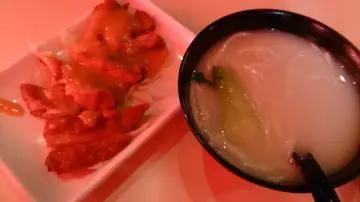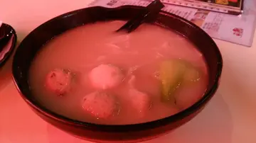 丸无咩特别.但鱼皮饺超淋..D肉梅架..D汤开始食淡淡地..但之后又愈饮愈好味..男友跟餐叫左雪糕红豆冰.+$8男友话OK..我叫左热朱古力.味好淡.埋单连加一$76.另外一提既系..食完无耐就开始口渴...