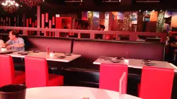同男友3.4点先起身..所以未食早餐..而我想买对波鞋..唔想去旺角..所以去屯门行下..未食早餐..去市中心揾野食...行行下男友停低..望住小鱼滋味..佢话同事曾经话好好味..于是就走左入去..一入到去..吓左一吓..心谂"咁红既"...店内系以红黑为住..但因为系下午时间..太阳照入泥..店内用红色帘..所以成间铺照到超红..之后店员安排我地坐圆型卡位..未坐时超开心..但一坐低唔舒服..唔色形容..