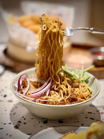 今次点左2个是日午餐,这味麻辣牛肋腩伴阔条面卖相唔错,牛腩经过炖煮后变得软嫩,麻辣调味料中的花椒为呢道菜增添了一丝麻味,辣度刚刚好,不会过于刺激。配搭弹牙十足既阔条面,面条吸收左麻辣汤汁的风味,与牛肋腩的口感形成了很好的对比。唯面既份量比较少,未必能够满足食欲较大的人。另一个瑞士鸡翼伴葱油糖心蛋饭,味道也很好,同平时台式料理相近似,葱油多点会更正。碗仔翅拼蒟蒻面有惊喜,同平时食开既更有口感。值得欣赏既仲有佢既包装,很精美,虽然离公司很近,包外卖包装结实,相信夸区也不成问题。