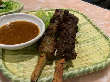 食物质素叫左个set dinner虾饼唔够爽,有点死实,味道一般生菜包唔可以选择辣度,肉质有点‘鞋’,冇乜味。炒饭都系冇乜味道炒菜唔错 味道几好串烧都几好 沙嗲汁好食饮品正常服务态度几好 好有礼貌环境干净