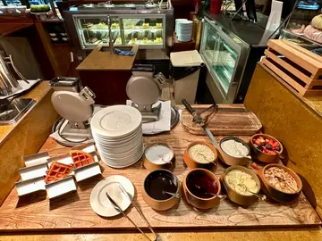 小编今日来到尖沙咀一间酒店咖啡厅「尖沙咀凯悦酒店咖啡厅」以崭新餐饮概念为客人带来半自助午餐体验🍽️ 提供多款不同风味主菜选择,包括澳洲 M3 和牛西冷扒配薯条、香煎海鲈鱼、海南鸡饭、印度牛油鸡、上汤龙虾烩伊面等👏🏼 同时可品尝丰富自助头盘如冻肉、芝士拼盘、即制凯撒沙律、寿司、精选餐汤以及一系列精致自家制甜品🍮 招牌焦糖炖蛋任食🔥 再配上咖啡或茶,享受滋味悠闲的午间时光✨「澳洲M3和牛西冷」和牛西冷肉质细嫩,入口嫩滑无渣,其特色是烤焗的蒜头,将烤熟或烘烤过的蒜头,去皮后压成泥状,使蒜头失去辛辣味转而带焦糖化风味🧄再配上红酒烧汁香浓醇厚,中和了肉类的油腻感🍷 配上酥脆薯条,成为经典的牛扒薯条组合🐮🍟「天多利烤羊架」烤得外焦内嫩,肉质紧实带膻香,薄荷酱清新解腻,青瓜乳酪酱则带来浓郁奶香,两种酱料各有特色💚 搭配香脆印度烤饼和薄脆,口感层次丰富,推介之选✨「凯撒沙律自助区」原个巴马臣芝士轮香气浓郁,与生菜、烟肉碎、青瓜和面包糠的搭配经典🥗 自选沙律酱包括凯撒酱、柚子酱、芝麻酱等,根据个人口味调配👏🏼「焦糖炖蛋」竟然可以任食‼️炖蛋质地滑嫩,即场蜜糖烧至焦糖,香甜不苦,甜度控制得恰到好处🍮 餐厅提供外卖的焦糖炖蛋HK$48港元,焦糖炖蛋自由可以尽情享用,绝对是甜品爱好者的福音🧡「原味烤窝夫雪糕」窝夫外层酥脆,内里松软,搭配Häagen-Dazs雪糕更是绝配🍨 口味有曲奇、抹茶、士多啤梨、朱古力、红桑莓,加上朱古力酱丝滑顺口,烤糖霜杏仁增添香脆口感,忌廉、士多啤梨、蓝莓等🍓🫐 ,DIY口味选择丰富👏🏼 🍽 :半自助午餐👅好味指数:8.25/10💰消费:HK$258+1📍 地址:尖沙咀凯悦酒店咖啡厅,尖沙咀河内道18号香港尖沙咀凯悦酒店大堂楼层…查看更多