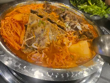 隐身于尖沙咀金巴利道韩国街的「삼삼뼈국」,以地道韩式汤锅闻名。黑色门面低调却总见人龙,周末晚市更是一位难求。这次试了招牌辣味汤套餐(2人份$572),虽价位偏高,但体验后绝对物超所值。泡菜无限添加。主角辣味汤锅沸腾上桌,红艳汤底翻滚著诱人气泡。选用猪脊骨熬制六小时以上,加入韩式辣酱、大酱与新鲜蔬菜炖煮,汤头浓郁层次分明—但吾太辣。猪脊骨肉量惊人,轻轻一扯便骨肉分离,吸附汤汁后更显鲜美。随汤附赠的韭菜与紫苏叶是画龙点睛之笔,投入滚汤中瞬间激发香气,令人食指大动。惊喜之处在于隐藏吃法:汤喝至三分之一时,可请店员帮忙制作「终极炒饭」。将剩余汤汁与紫菜、泡菜、韩式辣酱在热锅中翻炒,米饭吸收浓缩汤精华,形成微焦锅巴,香辣惹味程度堪称灵魂之作(炒饭另加$58绝对超值)。香煎韩豚肉片。搭配酸菜,平衡油腻感之余更添风味层次。虽然二人消费$572在韩餐中属高档价位,但份量足够三人分享,且食材品质与烹调技巧皆属上乘。…查看更多