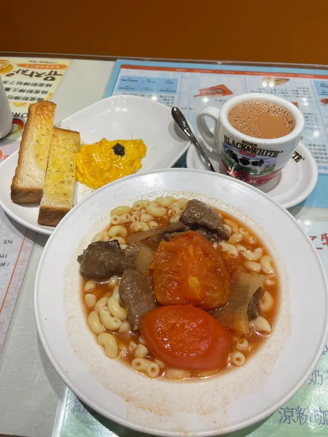 今日専程坐車落嚟西灣河呢間尚品百好冰室食午餐,午餐時段到店,已經有好多食客食緊午飯,幸好有空枱比我坐低,就睇下個餐牌,最後點咗呢個焗芝士黑椒汁牛脷飯套餐,跟個羅宋湯,多湯渣,好濃郁好夠味,牛脷飯隨後送上,份量剛好,炒飯底,撈黑椒汁食好味道,黑椒汁帶點酸味,唔太辣,牛脷厚切大塊有四塊,軟淋香滑,味道唔錯。[米饭]口味:🥚🥚🥚🥚[薄荷]环境:🥚🥚🥚🥚[服务铃]服务:🥚🥚🥚🥚[糖果]性价比:🥚🥚🥚…查看更多