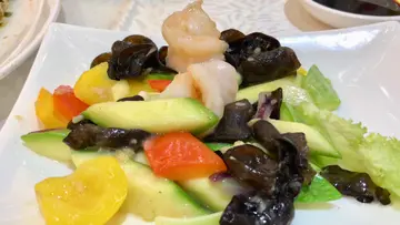 跟住到个炸海老,一埋梅晒既沙律菜做伴碟,件炸海老粉浆厚到爆,我到依家都劲度怀疑只虾其实系咪未熟?之后到上花胶汤啦~个花胶汤系几好饮既,公道啲好饮就系好饮,但人地个锅里面仲有汤(大约仲有2-3碗)问都唔问就自己收走?问佢我地个汤系边?佢用耳机问「有无人见过28号个汤?」我真系忍唔住笑,到底呢间系咩酒家?人地未饮完既汤都可以收走? 好啦见前面啲𩠌净系得个汤食得人,接下来啲𩠌都唔抱咩期望。蒸鱼,条鱼冻既叫个部长埋嚟又系木口木面,同佢讲条鱼冻咖㖞大佬,之后摸只碟,成碌木甘无反应但又无意向换㖞,阿爸顶唔顺讲左句:你比钱食条冻既蒸鱼你食唔食?之后先私私然拎返条鱼入去换。换左第二条鱼条鱼都系唔熟既