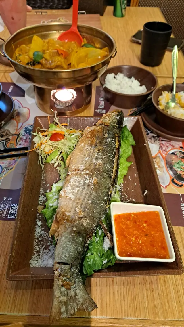 放工想係元朗食泰菜上網揾到依間就黎試一下真心款款好食誠意推介士多啤梨沙冰 $38真心抵飲 一黎見到咁大杯我同朋友見到都嘩一聲然後佢唔會好似藥水味咁真係有士多啤梨味用黎解渴解辣一流青木瓜沙律 $68青木瓜份量都幾多而且好FRESH酸酸地好開胃冬陰功明爐鳥頭 $168超級正!! 我同朋友都好鐘意飲冬陰功同食魚個冬陰功湯真材實料 酸得啱啱好又夠香魚肉又滑又入味 完美配搭!下次都要encore香葉肉碎炒飯 $78份量十足勁多肉碎肉碎乾濕適中 個味好啱我胃口平時唔係點食飯既我 因為肉碎太好食係咁撈飯食 食晒成個飯碳燒豬頸肉 $88側面燒到勁香 但又控制得好好冇燶 唔會太乾身點埋個秘製醬一齊食係天作之合埋單合共 $484真心好食 推介大家去試下…查看更多