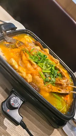今日去咗大角咀「尚发小厨」🥢,老板娘好热情🥰介绍咗佢地嘅招牌系烤鱼🐟同鸡煲🍲,今次就食咗佢嘅烤鱼🙌🏻!叫完嘢食就上咗前菜🥗,前菜系泰式无骨凤爪,凤爪爽口弹牙,酱汁酸酸甜甜🍋又少少辣🌶️,非常开胃🤤,去咗骨又食得好方便👍🏻!烤鱼上到枱要煮一阵先食得⏳,啲汤滚咗就可以开始食烤鱼喇!今次食嘅金香烤鱼系唔辣,卖相金黄香脆✨,好吸引!条鱼好大条🐠,煎到好香脆,仲啖啖鱼肉,肉质好弹牙🤩!汤底系南瓜蓉煮成啲🎃,所以就金黄色💛!配菜有薯粉,薯粉好烟韧弹牙🍜,吸晒啲汁,好好食🤗。仲有好多蔬菜🥬,有芽菜、莴笋🥒、冬瓜、莲藕、白萝卜🥕,全部都好清甜,仲吸晒啲汁,好入味🔥!仲有豆卜同腐竹!烤鱼嘅份量好多,配埋咁多款配菜真系食极唔厌😜!两个人食都已经好饱🫃。再加埋冻柠茶🧋,冻冰冰又酸酸甜甜🍋,啱晒解腻💦!呢度仲有其他辣嘅烤鱼🔥,仲有唔同嘅小菜同鸡煲🍗,仲有得打边炉🍲,下次一定要再嚟食下❤️!…查看更多