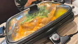 今次试左金香烤鱼新鲜清江鱼先煎香后浸汤,鱼肉细嫩无腥味,南瓜香甜汤底渗透每一丝鱼肉,汤底系南瓜汤底好清甜,仲有满满南瓜蓉,啱晒唔食得辣既人士。除左原条烤鱼,仲有好多配料薯仔、莴笋、芽菜、木耳、豆腐、豆卜、粗薯粉,全部配料吸满汤汁好入味。烤鱼连铁盘上桌,边食边保温,越煮越入味。南瓜汤烤鱼既组合少见,颠覆传统烤鱼的油腻印象,反而好清甜食到鱼肉鲜味,而且份量十足,2-3人食都绝对够,大推!餐厅除左烤鱼仲有鸡煲、打边炉同其他小炒菜式,下次黎试下其他菜式先。…查看更多