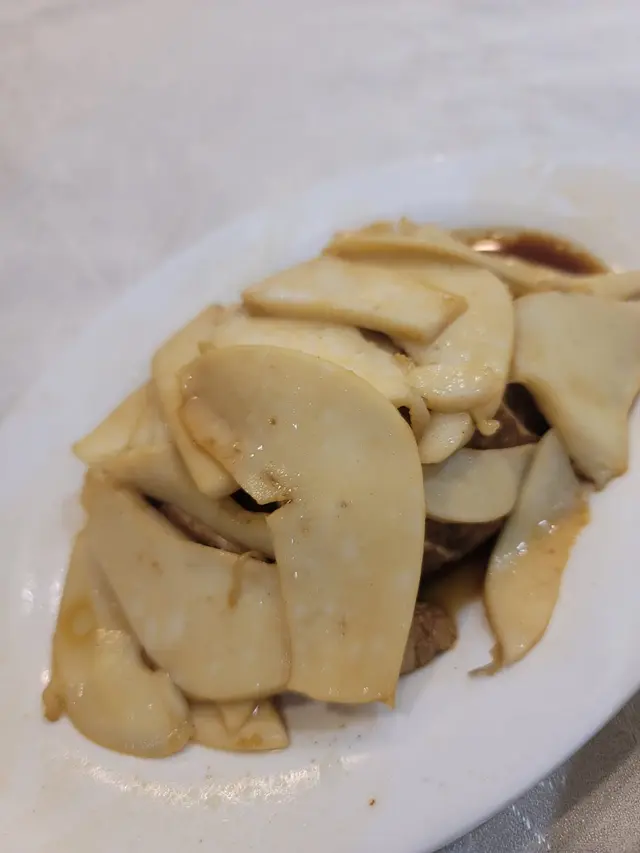 尚興飯店屹立係上環一帶已經有超過五十多年,老闆堅持每日去街市入貨,務求餐廳提供最高質量既食材俾客人😌我哋一就座,職員主動拎餐前功夫茶俾我哋飲,茶杯以陶瓷製成,小小既杯盛載住濃郁鐵觀音,亦希望食客之間打開話匣子,暢所欲言!🤓餐後既功夫茶可以幫助消瀉,減輕飯氣攻心既情況!🍽潮州鹵水鵝片餐廳用汕頭既獅豆鵝,刀功了得,每一片鵝片既厚度都均一,肉質柔滑入口無渣同嚼勁十足。滷豆腐充滿滷香,非常嫩滑。唯一可以挑剔既地方就係鵝肉分量比以往減少左。🙈🦐節瓜蝦米粉絲煲一道傳統既家常便菜,節瓜切絲再加入大蝦米同粉絲烹調而成。食左咁多重口味既菜式,呢味菜最適合清清口腔,俾腸胃休息下,再繼續作戰!😂🐚汕豆炒薄殻薄殻係一種外殼極之薄既海產,同青口形狀相類似,但體型迷你非常多。餐廳用左薄荷葉同蒜粒炒香,香氣撲鼻而來,但就咁食有小小過鹹,適合餸潮州粥或者白飯😛!🥩沙茶炒牛肉沙嗲牛肉炒芥蘭,芥蘭脆口,沙嗲汁有好多花生粒🥜每一口牛肉同芥蘭都充斥住沙嗲醬充斥。但牛肉無牛味,用得太多梳打粉去醃,入口雖然嫩口,但掩蓋晒牛肉既鮮味!🍲蠔仔粥蠔仔粥保持一貫水準,用料講究,選用肥大飽滿既蠔仔,加上肉碎方魚一齊熬煮,湯頭鮮美。食既時候再攤上胡椒粉同埋小小辣椒油,嘩,諗返起都流晒口水!🥳🥳🦪潮州蠔烙餐廳選擇用煎既方式而不係用炸,減少罪惡感,感覺上好似食得健康小小。蠔仔數量唔少,蛋亦冇煎得過火,外脆內軟,再點魚露食,蠔肉既鮮味出晒黎🤩🍠福果芋泥水準可以稱得上係香港數一數二。芋泥蒸得軟綿,芋頭既香氣揮之不去,齒頰留香,再配以去核煮至入口即化既白果一齊品嘗,令人回味無窮!❤️依家已經比較小餐廳烹煮咁費時又少錢賺既菜式,覺得自己好幸運仲食到傳統既潮州甜戲品😍😍😍📍尚興潮州飯店上環皇后大道西33號地下查看更多