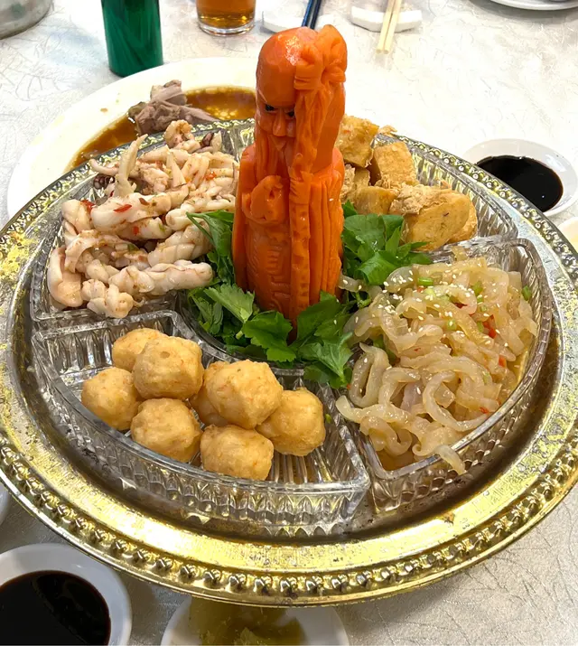 一行六人飯敍,首先點了拼盆,問服務員叫甚麼size,佢話叫個細就夠食,跟住點了鵝片拼鵝肝加腸,服務員就叫食住先再唸。拼盆有蝦蟹棗,魷魚同海蜇,份量真係夠六人吃,四樣都好味。鵝片鵝肝滑身,腸則去左肥膏好爽。之後加煎九肚魚胳,魚甜煎得香,第一次試呢種煎胳。腿茸紹菜清甜、兩麵黃幾乾身、齋春卷抵食。甜品叫咗一碗芋泥,撈埋送嘅綠豆爽幾挾。第一次食反沙芋都唔錯。可能預做一輪,所以可慢慢叫嘢食,雖然冇叫貴價野,服務員都冇白眼。查看更多