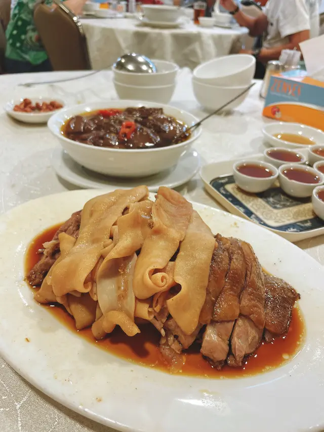歷史悠久及名氣響噹噹的傳統潮州菜館奉上的功夫茶,香濃醇厚,很回甘。前菜係咸酸菜,清甜爽口,令人胃口大開,好味到停不下來,而且,源源不絕送上枱,吃過不亦樂乎!Menu 有很多傳統菜式,花多眼亂,令人有選擇困難…招牌滷水鵝片拼盤,滷水夠香夠濃,足料,鵝片柔滑,豆付,鵝腸及鵝肝,款款都咁好味!髪菜卷,只此一家,要早預訂,係最最最精彩的菜式!煎蠔絡,是煎的,不是炸,很考功夫,旦份量多,香滑,沒有過老,蠔數量亦不少,鮮甜美味,出色之作!沙爹牛肉兜亂炒河,好正宗,好味到不得了⋯⋯河粉炒得好,沒有黐埋一舊,每條河粉都沾滿香濃的沙爹汁…牛肉亦嫩口⋯⋯單尾送贈的清心丸綠豆爽,好好味,絕不欺場!值得一去再去,explore 更多的傳統潮洲美食!特別一提,service 非常好,很週到,有賓至如歸之感!查看更多