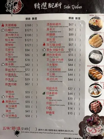 看到好的食评有几百,差的只有几个,便很有期望地冲去试试喔!最后都是中伏;首先麻辣汤底很差,似是现成汤包,是我人生中尝试过的最差一个汤底;海鲜食材不太新鲜,蚝及带子有点霉霉感,价钱$339相比食材质素很不值,手切安格斯$209只有4-5小片;点菜后上菜需时很久,催促多次还是没赶快送来;礼貌只是一般,不知道从那里来的好食评?