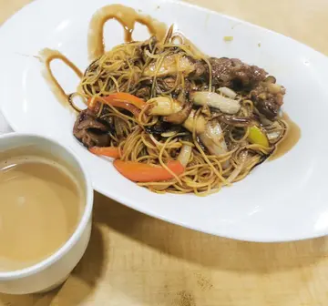 下午茶焗猪扒饭跟一个小食一杯热饮$55珍珠饭小小偏硬车打芝士炸过猪扒有少少肥肉,ok肉丸似自制,里面没有香草最特别的是隔篱枱的卡邦尼意粉隔篱两个人都觉得意粉太干侍应知道收回厨房客人食过嘅意粉同另一个客人未食过嘅意粉分开两碟再煮过之后原碟奉上…查看更多